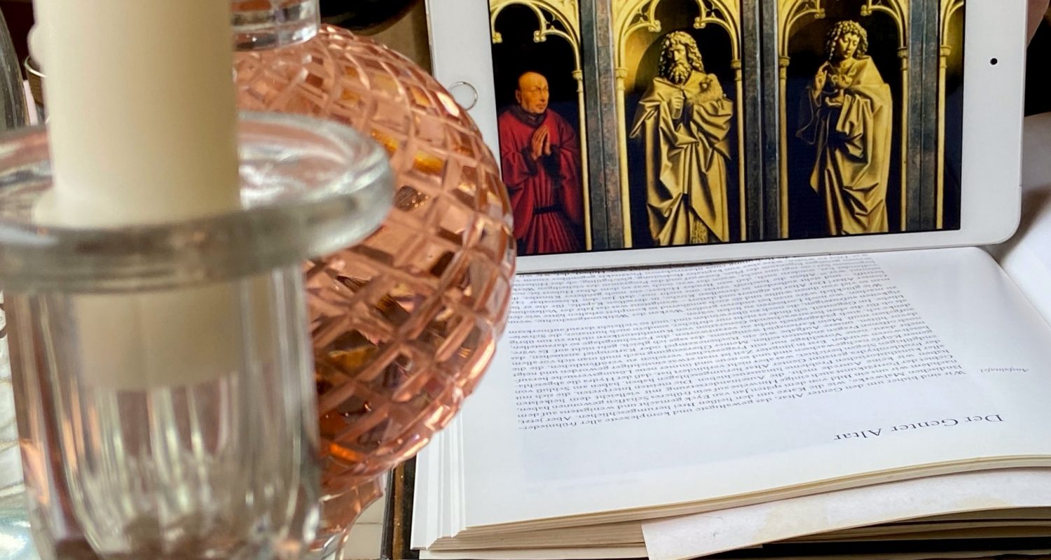 Unserem Treffen an diesem Montag habe ich förmlich entgegengefiebert, einem Lunch mit einem der bedeutendsten Werke der Kunstgeschichte: dem Genter Altar, signiert und datiert Jan van Eyck, 1432/35, aufgestellt in der St.Bavo Kathedrale in der flämischen Stadt Gent. Wir lassen wirklich keine Superlative aus. Es war das Thema meines ersten Semesters Kunstgeschichte, lange ist’s her, aber …