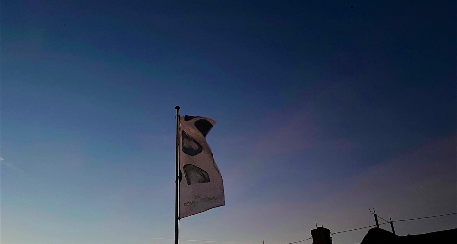Die neue Flagge ist gehisst und begrüßt mich heute morgen, Sterne am Himmel und eine schmale Mondsichel. Wie schön ist das: Muscheln fühlen und vom Universium umhüllt werden. – Ach, lasst mich ein wenig kitschig sein und romantisch und prosaisch, das fehlt uns viel zu oft im Alltag. Ich fotografiere also die Fahne von rechts …