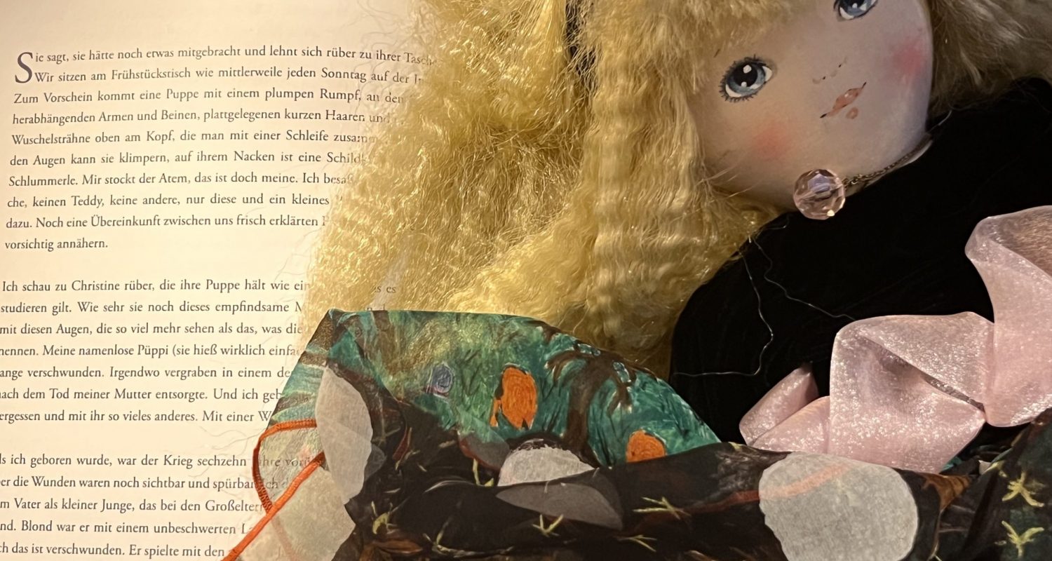 “Das Mädchen mit der Puppe” habe ich eines der Kapitel in unserem Childhood Buch überschrieben. Ich besaß nur eine, “Schlummerle” hieß sie, mit plumpem Rumpf, herabhängenden Armen und Beine, plattgelegenen Haaren und Augen, die klimpern konnten. Als kleines Mädchen schleppte ich sie überall mit hin, sie baumelte an meiner Hand, schleifte über den Boden, lag …