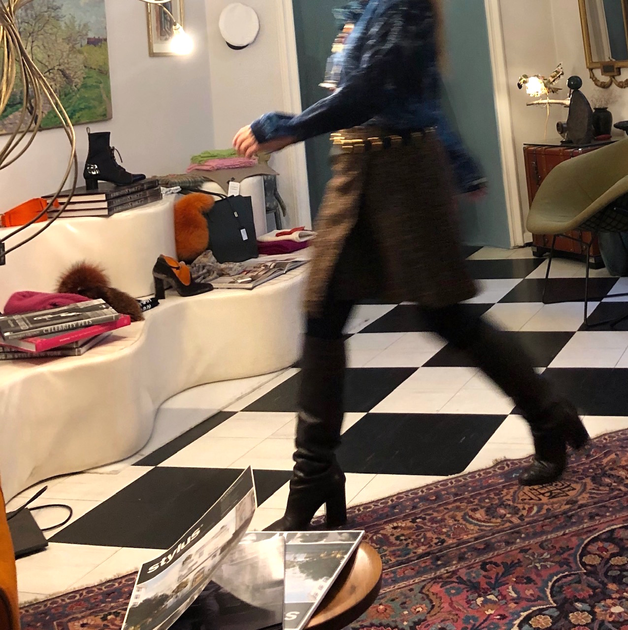 In unserer Familie gibt es zwei Flaneure, meinen Mann und Roma, und zwei, die weit ausschreiten und in hohem Tempo durch den Alltag rasen, das sind Toska und ich. Zu uns letzteren passt der Wickelrock. Ja, man könnte sogar sagen, ich habe ihn gerade für diese Frauen entwickelt, die pausenlos von A nach B eiligen, …