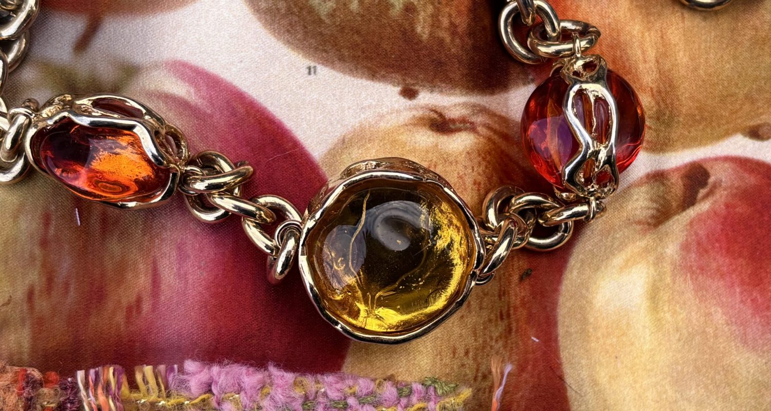 Was für eine Freude, mein Skizzenbuch aufzuschlagen mit all den prallen, farbenfrohen, verführerischen und erzählerischen Motiven und Stoffen. Ich beginne zu träumen, zeichne Modelle, entwerfe neue Jacken und spüre den fröhlichen Schwung der Seidenröcke. Es braucht nur ein paar Minuten und schon wandere ich selbstvergessen durch meine eigene Encyclopedia. Unbedingt dazu gehört das “Bling-Bling” mit …