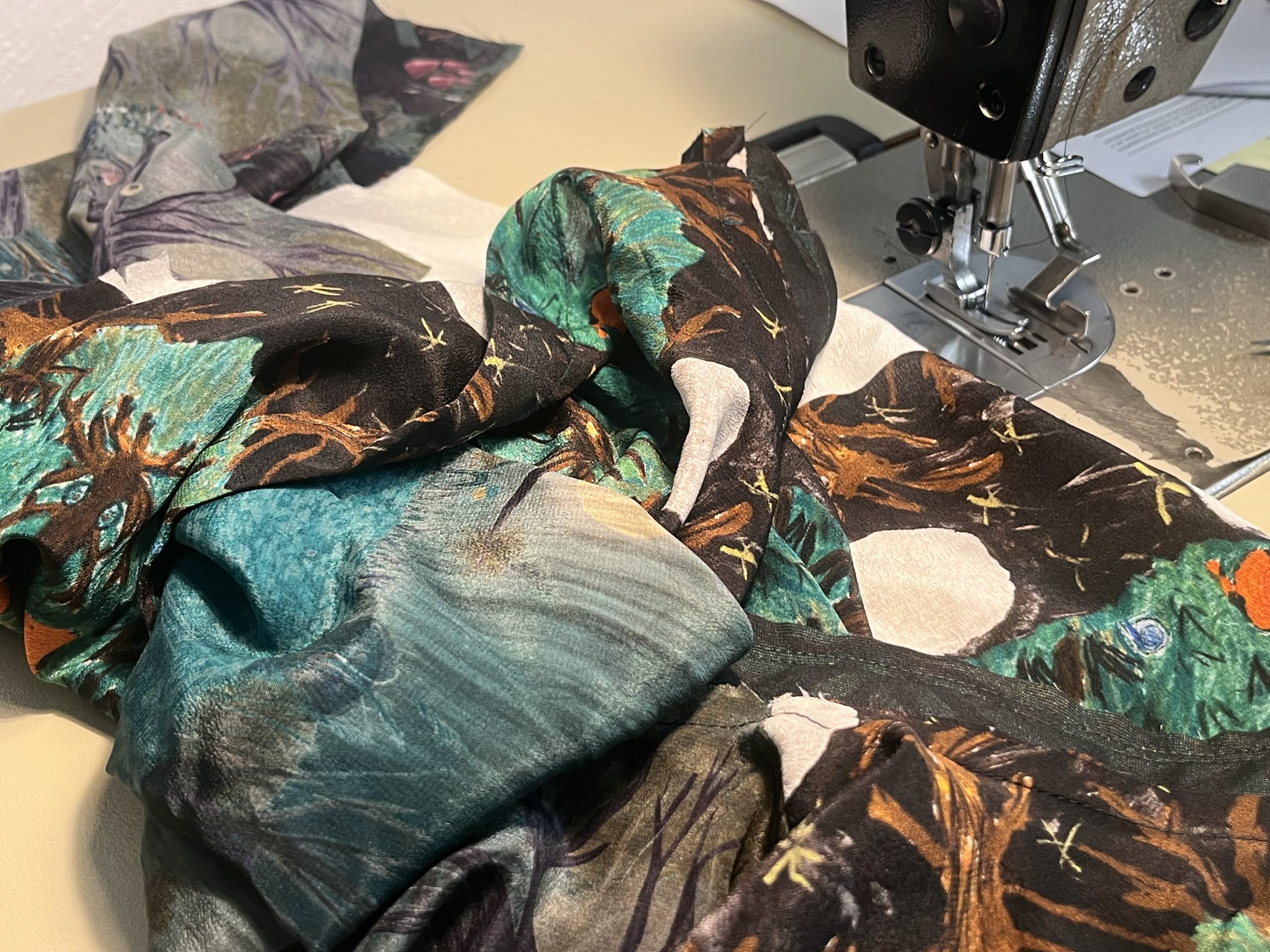 Alles weitere übernehmen Aldo und Erika am Comer See. Es dauerte ein paar Wochen, dann treffen vorgestern die Andrucke aus Italien ein. Dieser Moment ist immer aufregend. Funktioniert das Motiv als Seidenstoff für eine Bluse? Wie sehen wir darin aus?