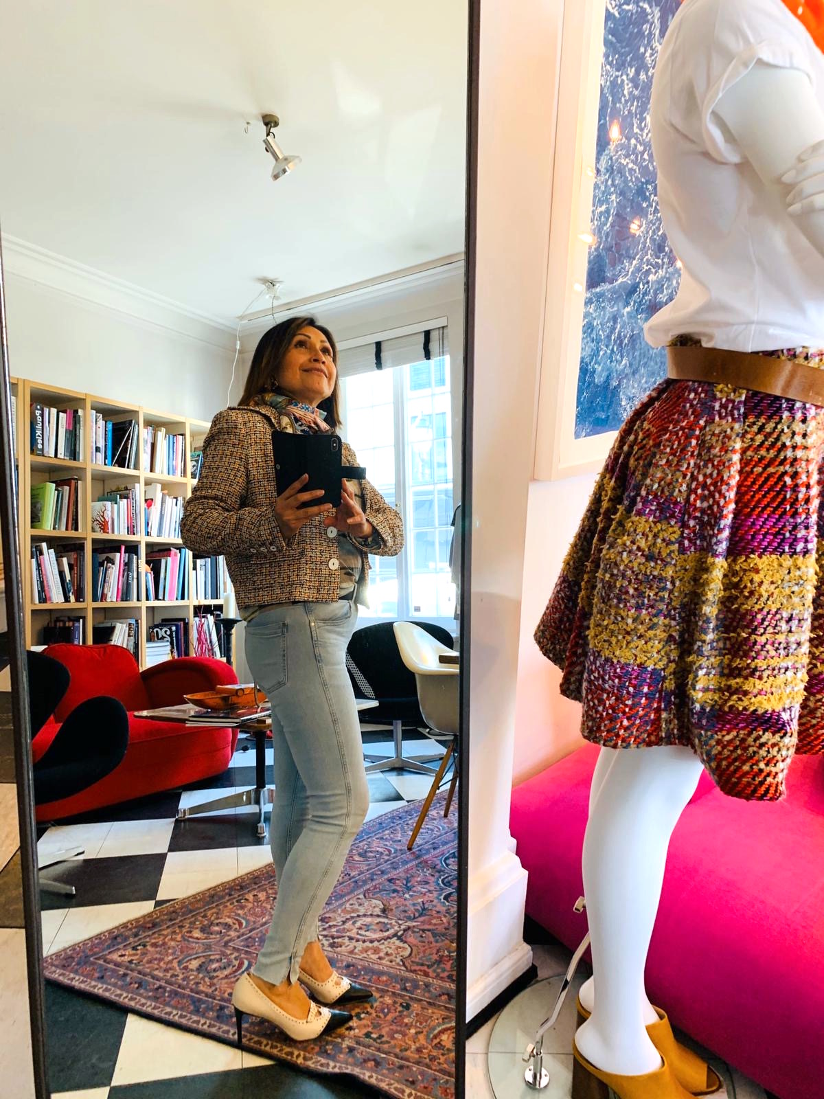 Abb: Coco Jacke aus leichtem Seide-Cotton Bouclé von unserem Lieblingsfabrikanten, der exklusiv Chanel belieferte, Savannen-Futterstoff. Größen S und M. (Muttertags-Deal € 500).