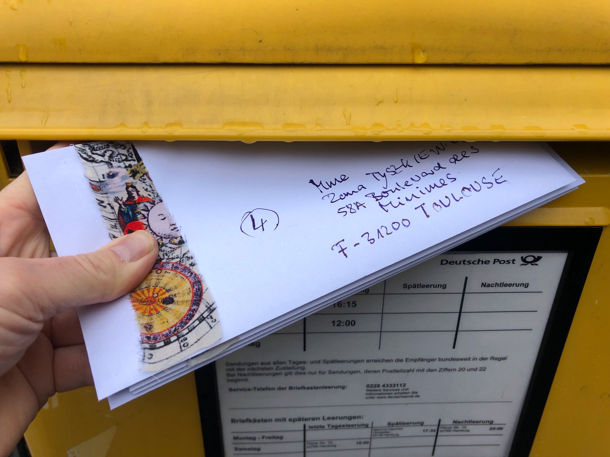 Und in der ganzen Zeit denke ich ein wenig an die Adressaten und wann und wo und wie sie ihn wohl lesen werden, denn mit der Post ist das ja auch so eine Sache. Ein paar schöne Briefmarken noch schnell draufkleben, ein ausgeschnittenes Schnipsel vom Stoff und dann räume ich meinen Schreibtisch wieder leer und mache Platz für all die Aufgaben, die noch vor Weihnachten erledigt werden müssen. Es gibt übrigens jeden Tag einen Brief an Roma und an Toska, denn das ist mein alternativer Adventskalender!