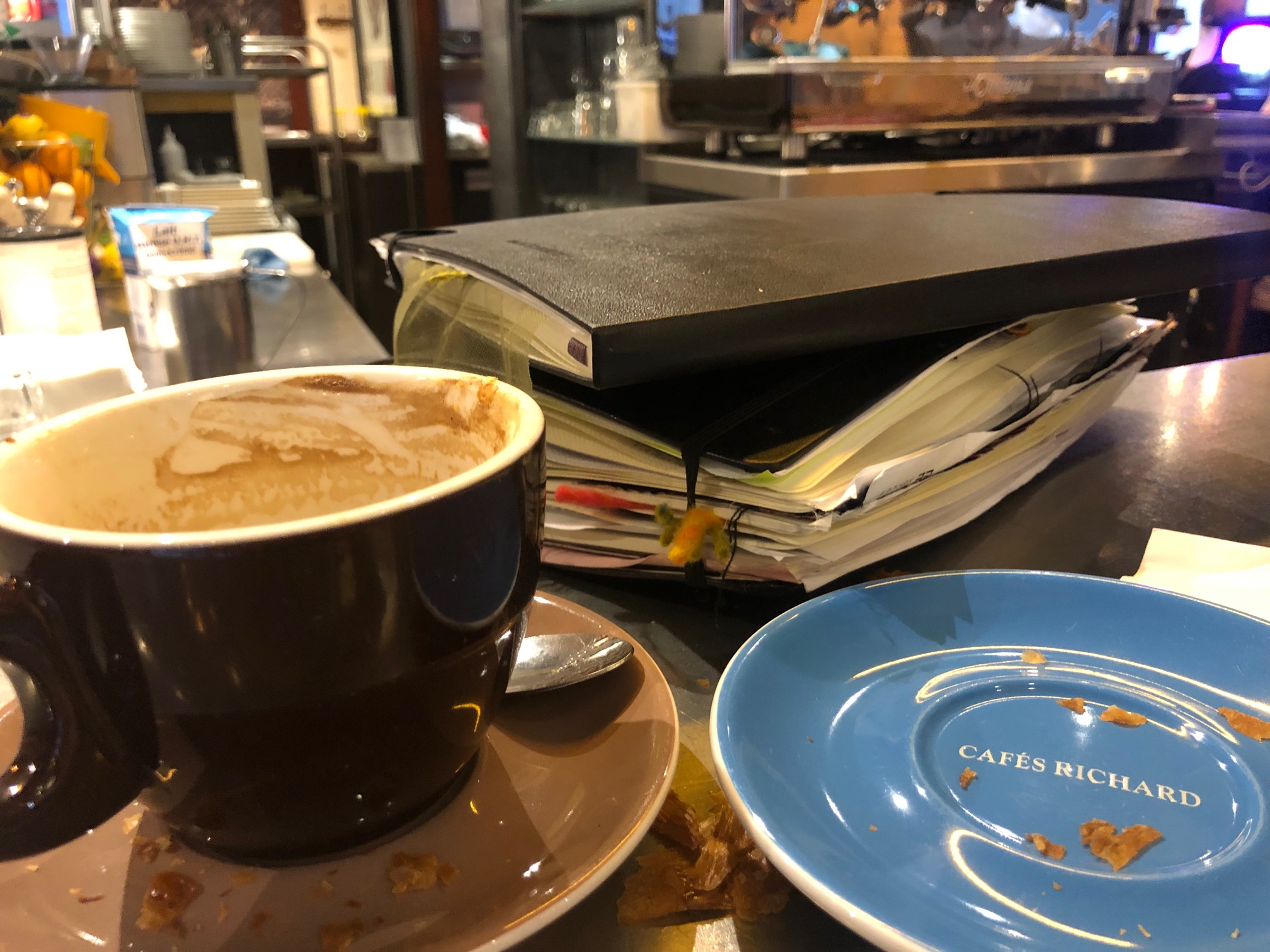 Ich notiere ein paar Ideen, warum „disruptive“ gerade so ein Wort ist, das mich umtreibt, weil ich in diesem Jahr meinen Kosmos ein wenig zerlegen musste und wieder neu zusammenbaue. Dann frage ich sie rhetorisch, wie es ihnen geht, was das Studium macht, dass sie nicht so viel Kaffee trinken sollen.