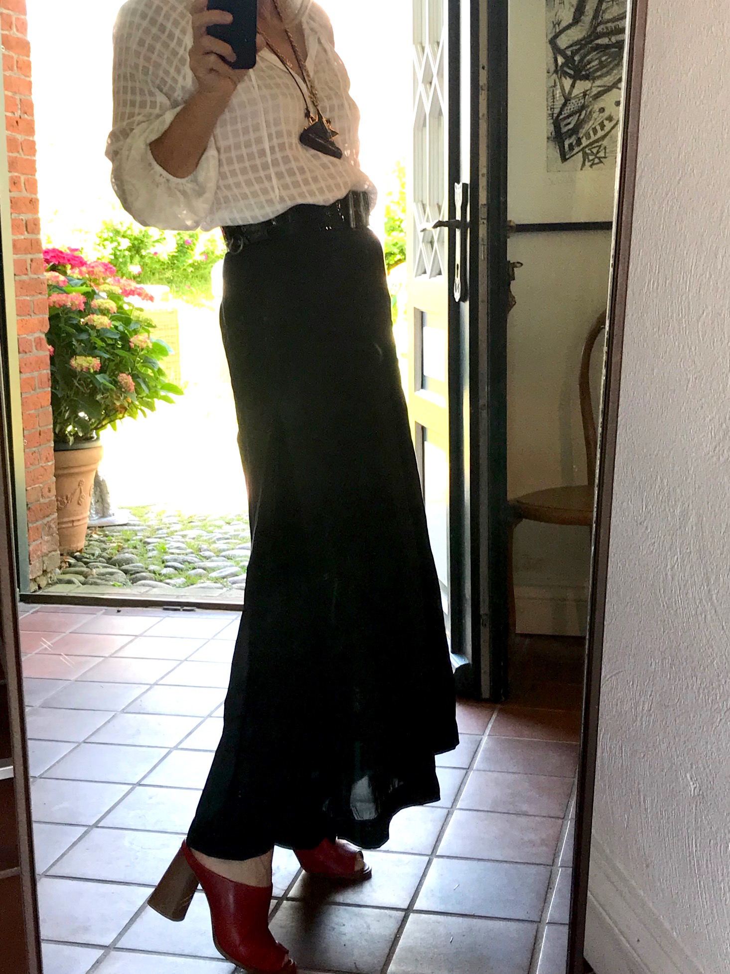 Abb: Batist Bluse (€298), Vintage Hose Loewe (€ 300), Schuhe Taglia Scarpe (€390), Gürtel Alexander McQueen (privat)