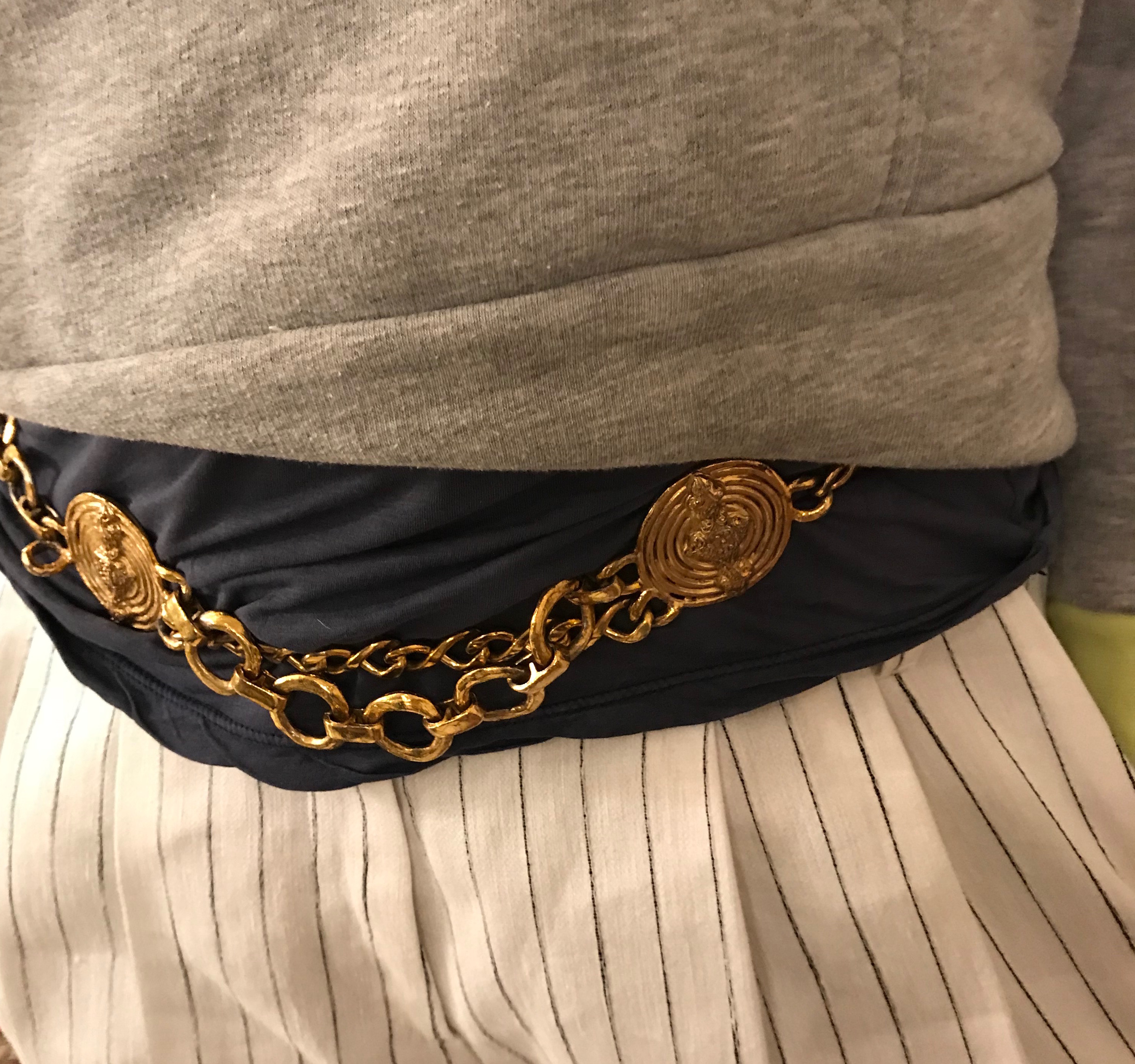 Für Yves Saint Laurent war der Gürtel nicht nur ein Objekt, das die Frau in der Mitte teilte, sondern für ihn war es ein echtes Schmuckstück. – Das steht für Yves, aber für mich gilt viel grundsätzlicher, dass der Gürtel ein nicht wegzudenkender Akzent in der Gesamtheit eines Looks ist. Eine coole Jeans ohne Gürtel kann man vergessen. Die Leggings mit einem Gürtel an langen schlanken Beinen ist der Hingucker.