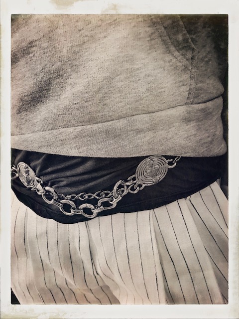 Mit Hoodie, mit T-Shirt, darüber der Nadelstreifen Blazer und dazwischen der Vintage Gürtel von Yves Saint Laurent. Es gibt so viele Möglichkeiten mit einem Outfit zu spielen.