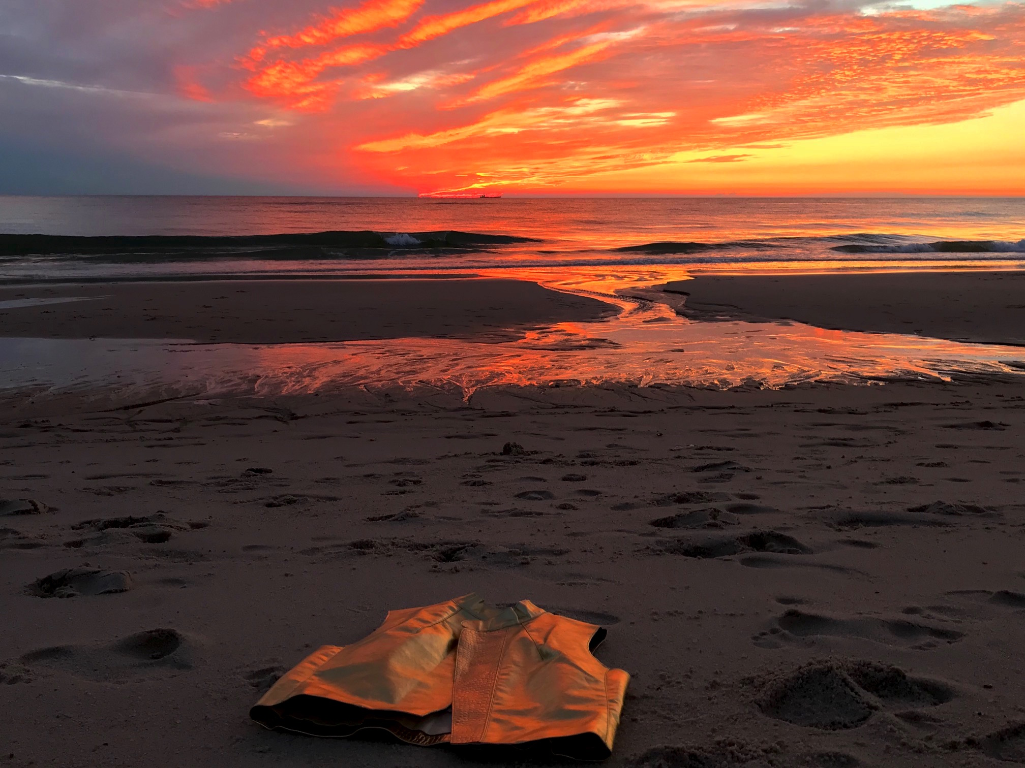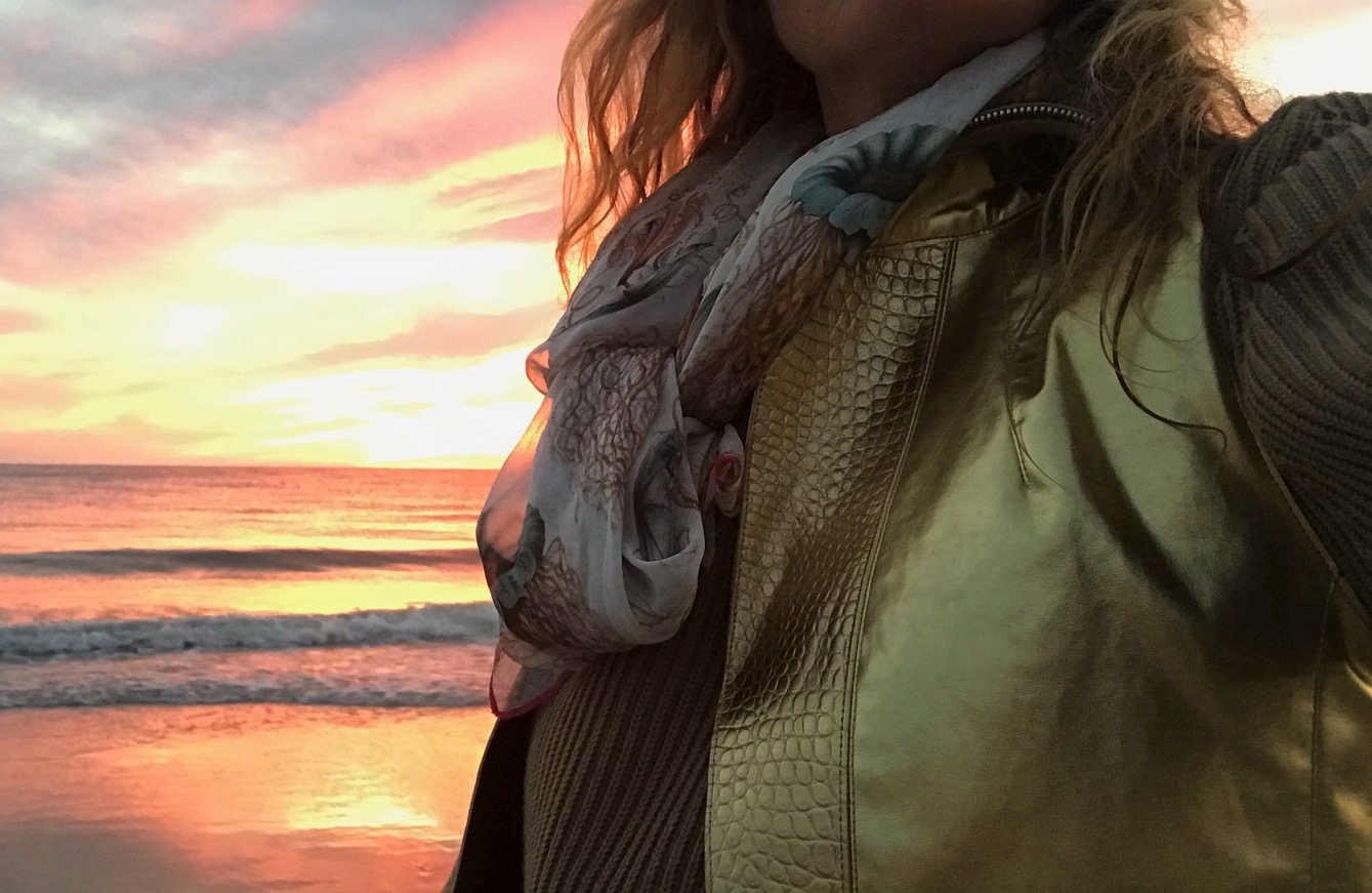 Und wenn die Sonne am Himmel golden und blutrot untergeht, dann bin ich genau richtig mit dem dicken Pullover, dem Medusen Seidentuch und der goldenen Vintage Weste von Dries van Noten, die nun die Farben des Sonnenunterganges auffängt. Die Alchemisten des Mittelalters hielten Gold für “erstarrtes Licht”.