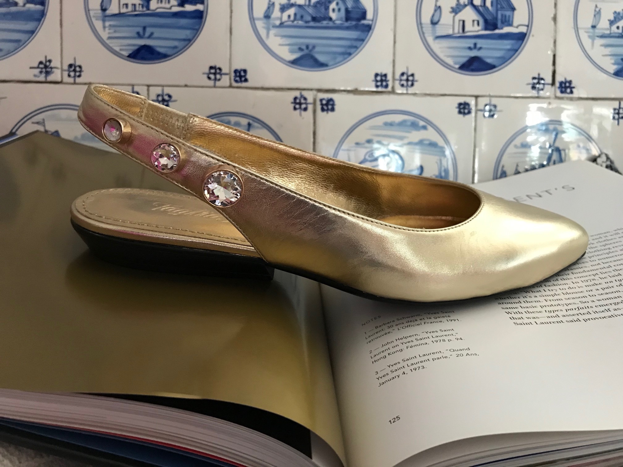 Abb: Taglia Scarpe, Slingback gold (€ 370), Vintage Yves Saint Laurent Schmuck.