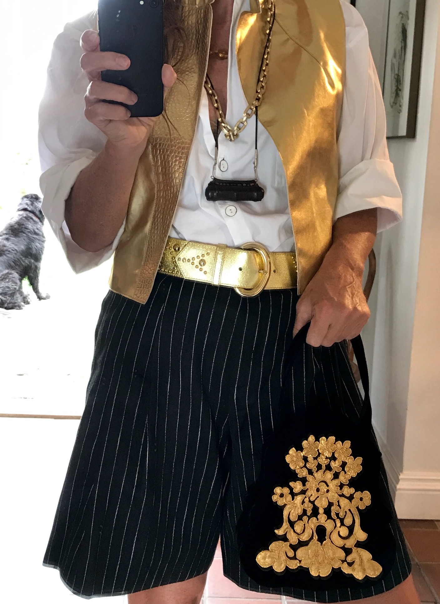Ich liebe Gold! Wohl dosiert und mit einer Attitüde der Selbstverständlichkeit. Damit folge ich intuitiv dem großen französischen Designer, der für die moderne Frau entwarf, die sich nicht permanent umziehen möchte, die es simpel und raffiniert liebt, die einen Look um sich herum kreiert, der nicht an eine Tageszeit gebunden ist.