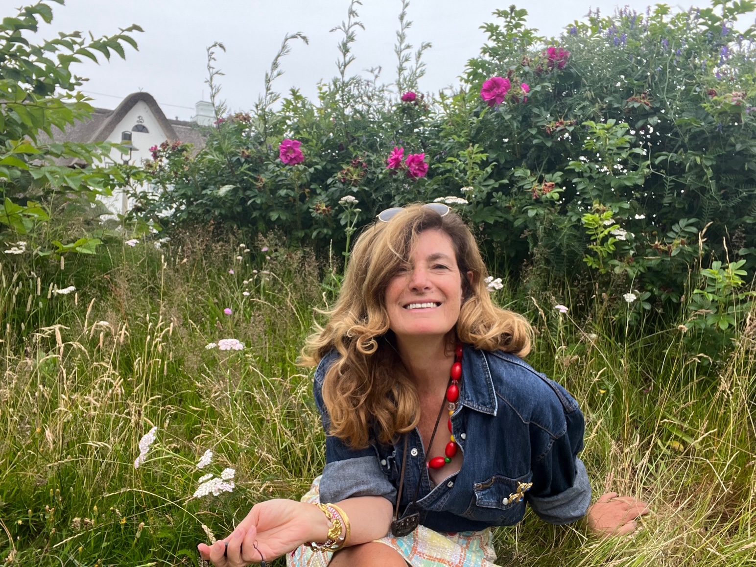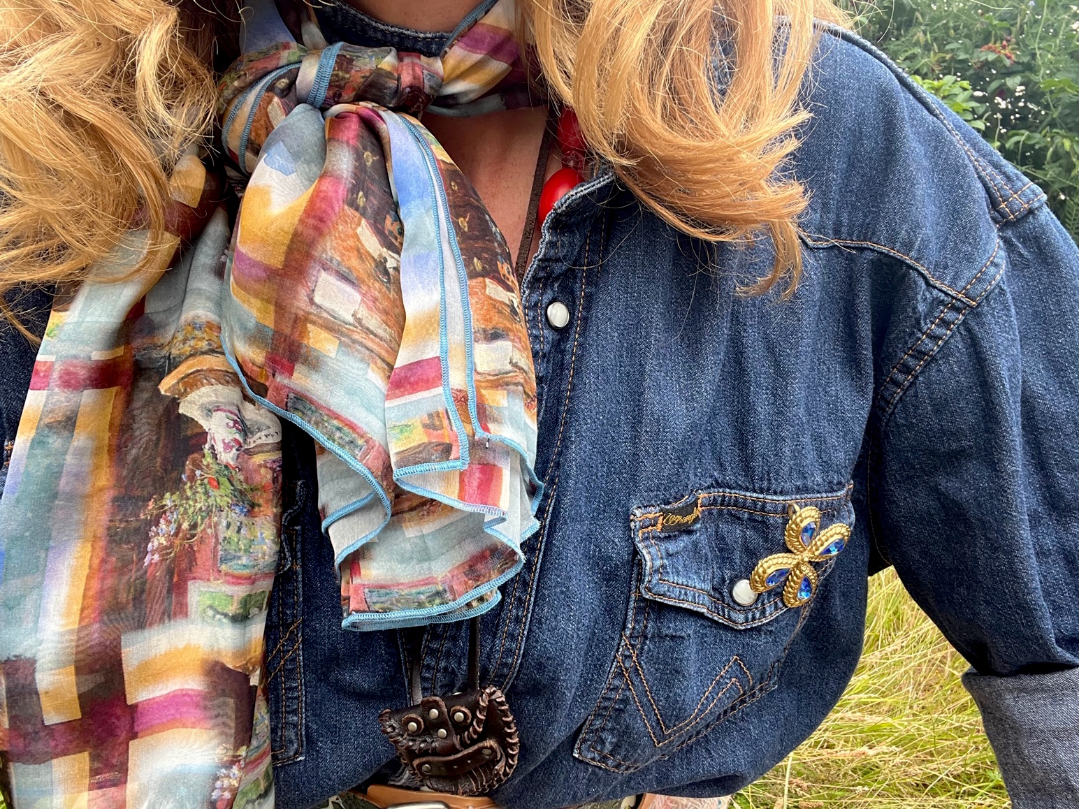 Am liebsten kombiniere ich eine Portion Männlich mit einer Portion Weiblich, zum Beispiel den Rock mit dem Jeanshemd, letzteres entwendet in Größe XL von der linken Kleiderschrankseite des Grafen. Die Krawatte lass ich allerdings weg, der Schmuck steht mir besser.