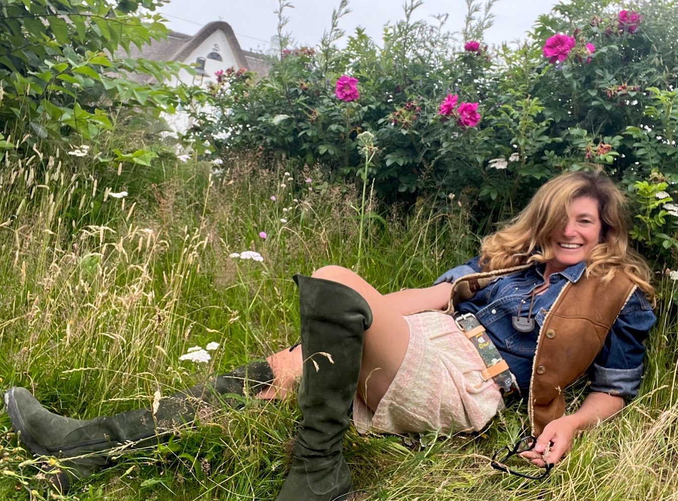 Kurze Hose, Gürtel Japanischer Garten, alte Jil Sander-Weste, Stiefel Taglia Scarpe, Schmuck Yves Saint Laurent