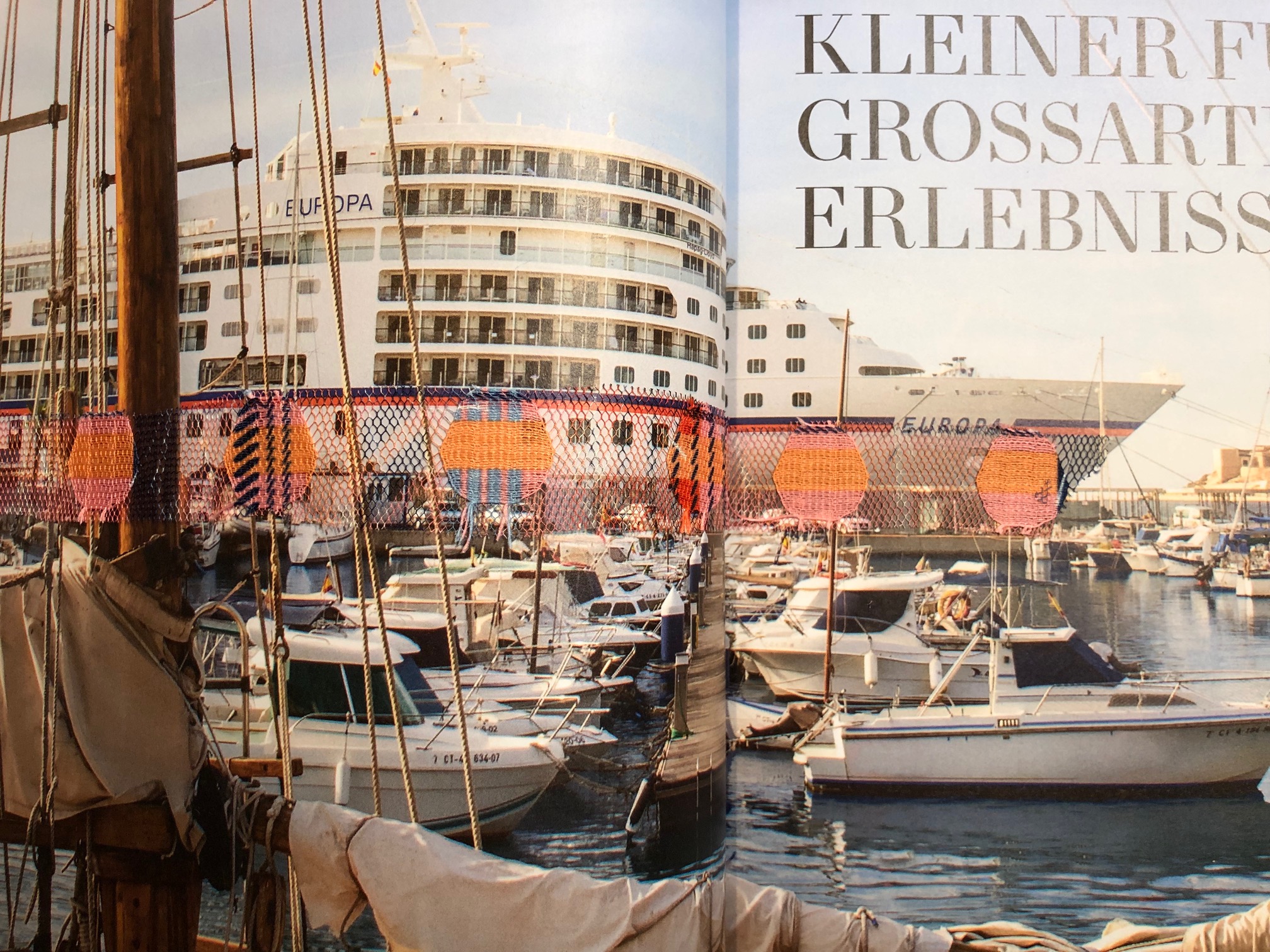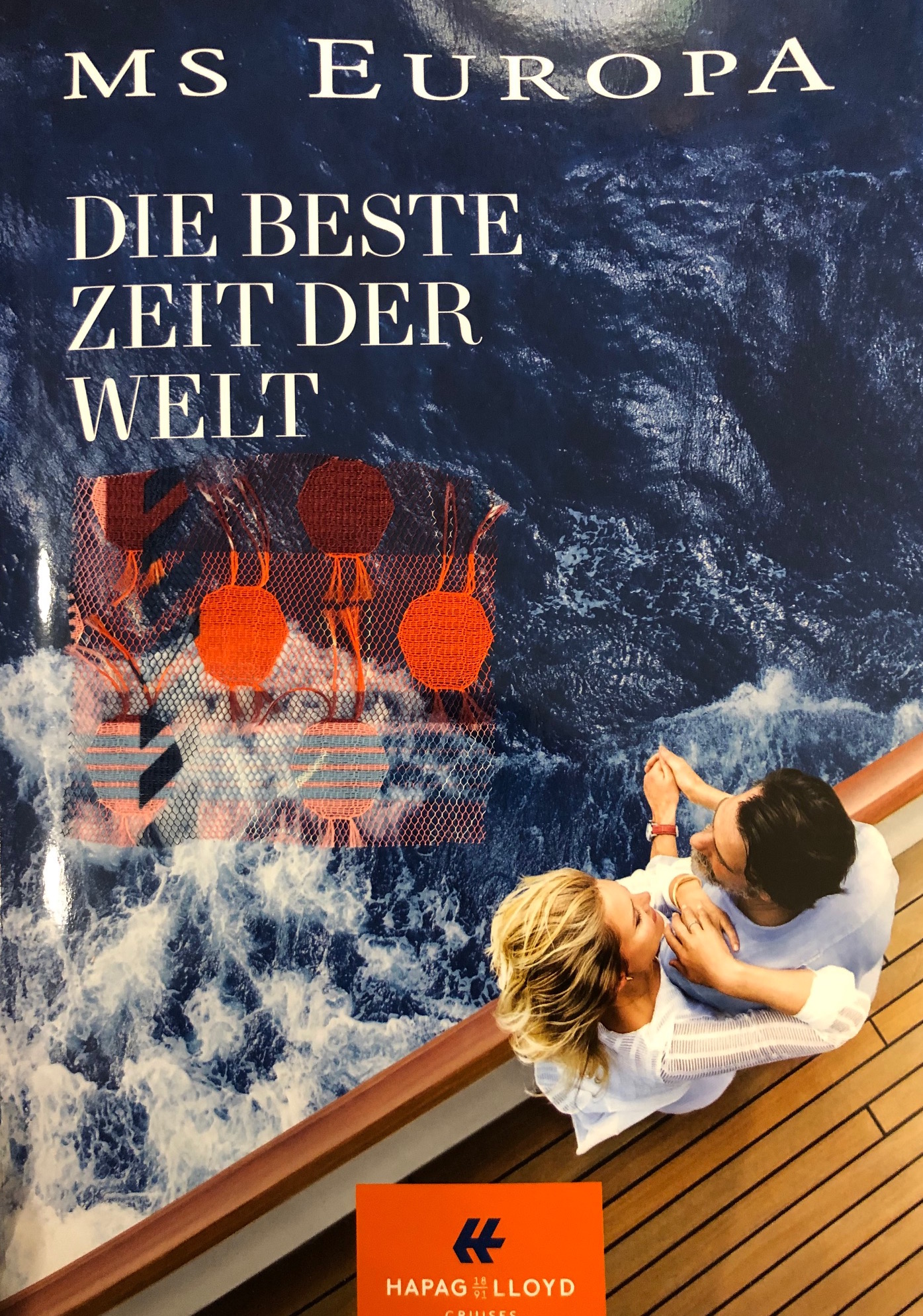 Die Corporate Identity Farben von Hapag Lloyd Cruises werden auf spielerische Weise wieder aufgegriffen und passen zur Verjüngungskur der alten Lady. Zukünftig soll alles an Bord lässiger sein, kein Dress-Code mehr (wie schade). Auf dem neuen Katalog lacht eine junge Frau mit Kaugummi-Blase, eine kleine Provokation. Mal schauen, wie das neue “Kleid” angenommen wird, wenn es im Oktober weiter auf große Fahrt geht. Ich denke, die schönste Yacht der Welt ist dann noch ein wenig schöner. Und Roma e Toska wird zur Patin auf Lebenszeit ernannt, so der Deal nebst einem kleinen Lizenz-Sümmchen auf das Konto der Firma. Schiff Ahoi!