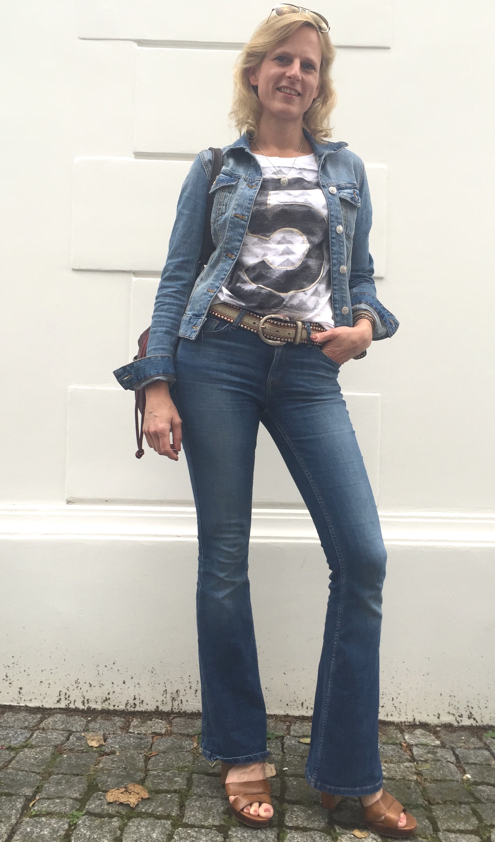 PIC: Simone before: Jeans, shirt, jeans jacket, high-heels.