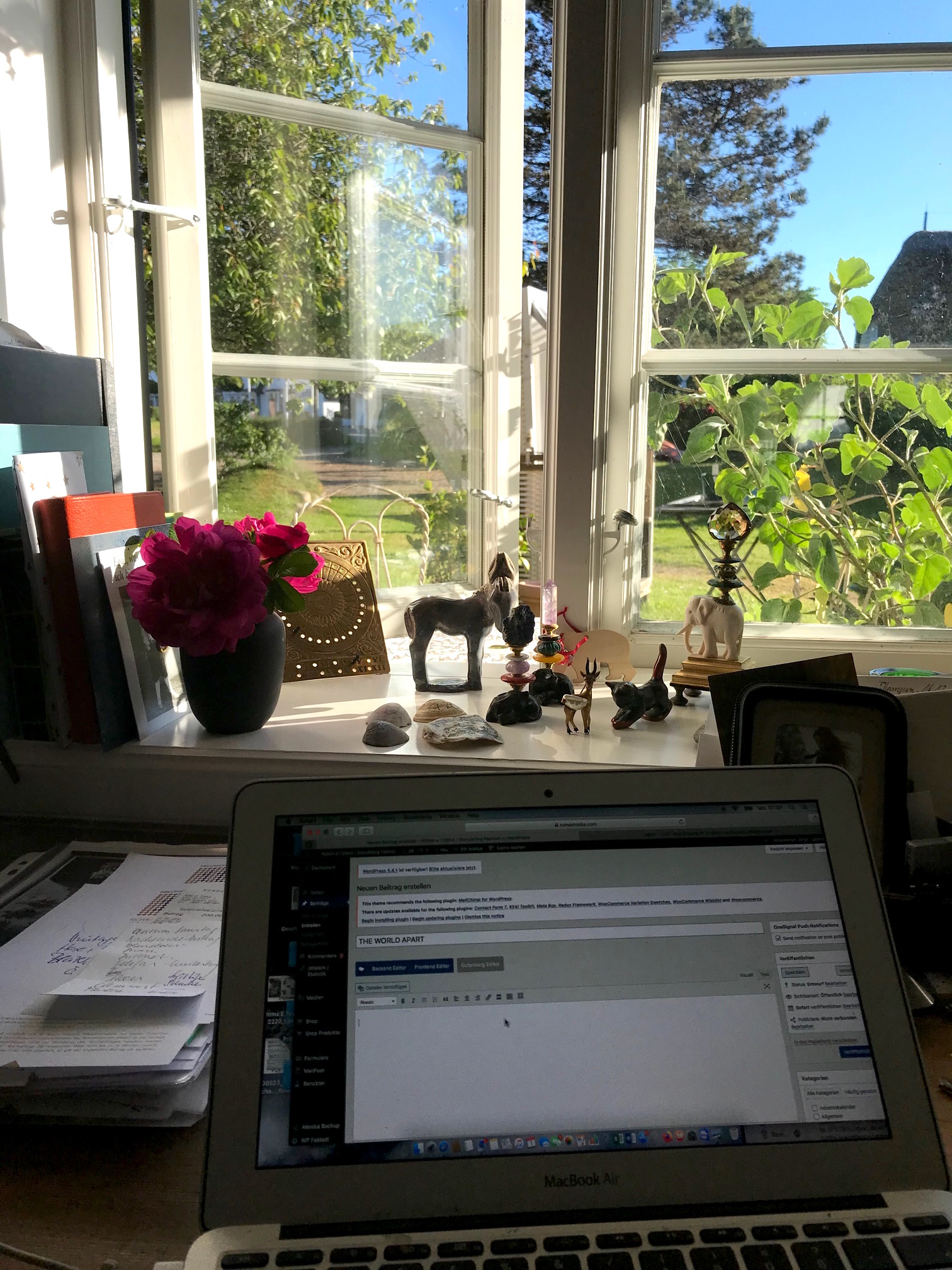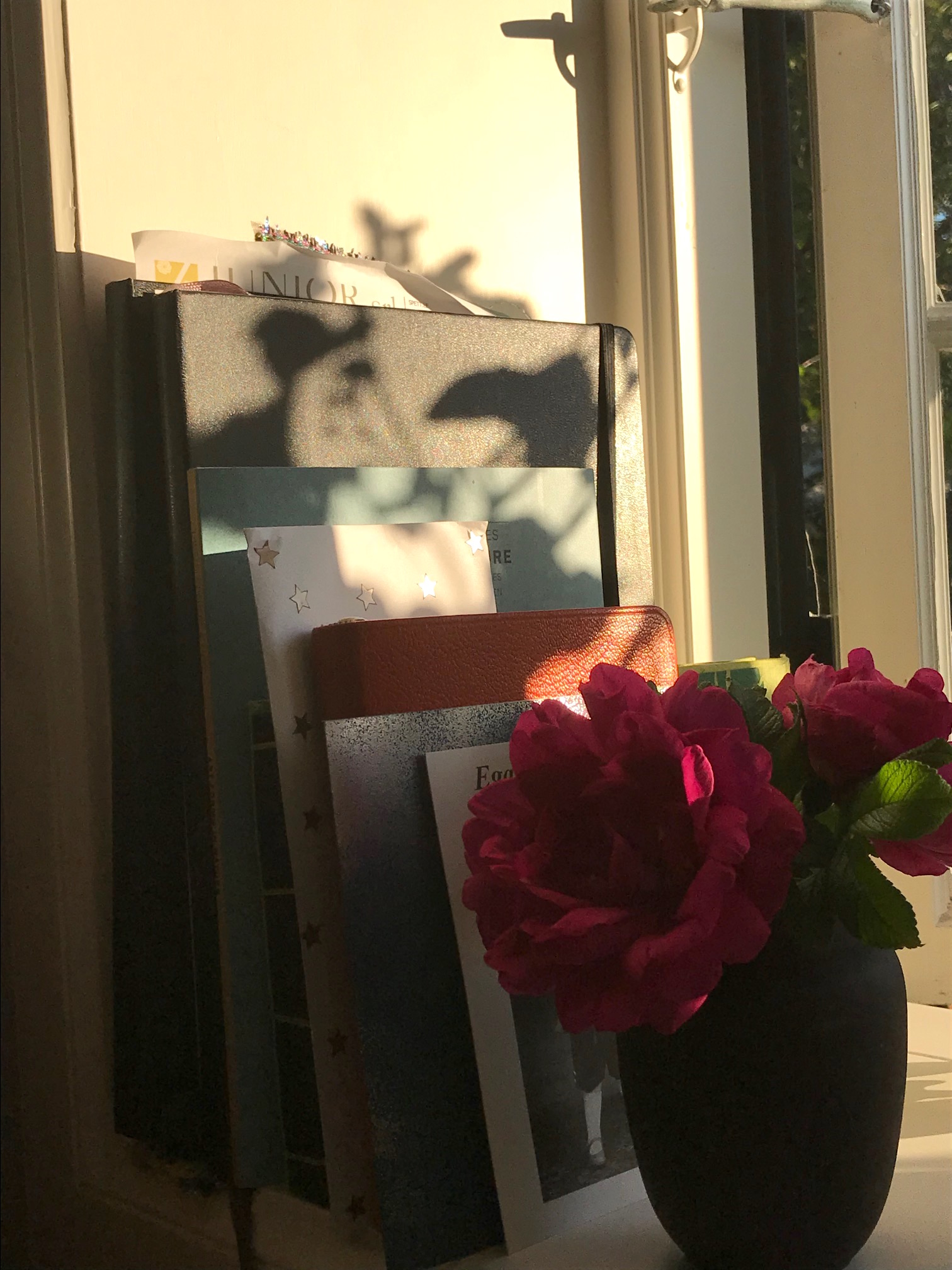Die Heckenrose in der Vase duften, das Sonnenlicht spielt seine Muster an den Fensterrahmen, die Vögel zwitschern. Idylle total. Die meiste Arbeit des Umzugs ist getan, nun kann ich mich auf die Kollektion konzentrieren und ein wenig die nächsten Stunden genießen. Es ist Pfingstmontag, die meisten schlafen jetzt noch.