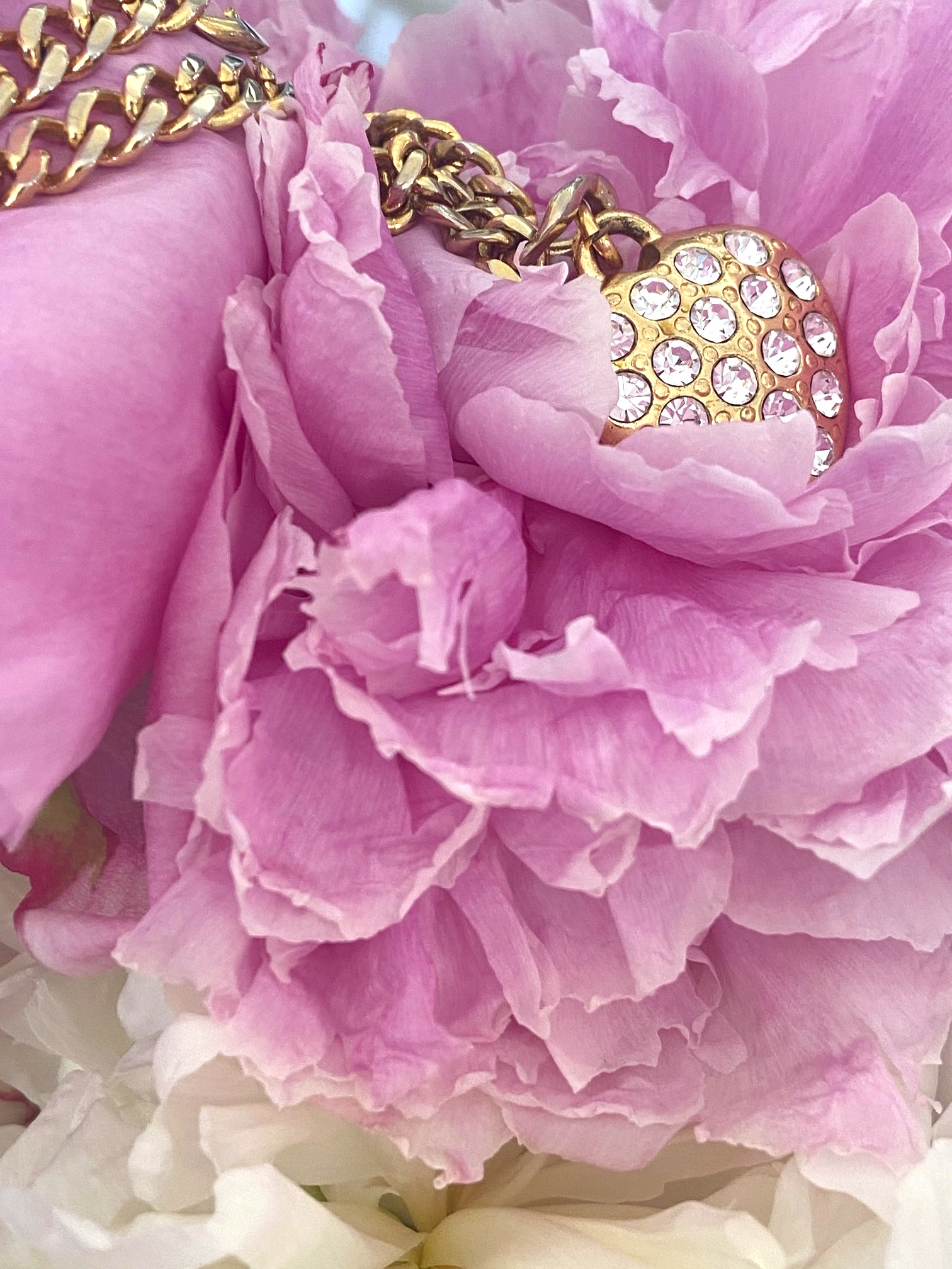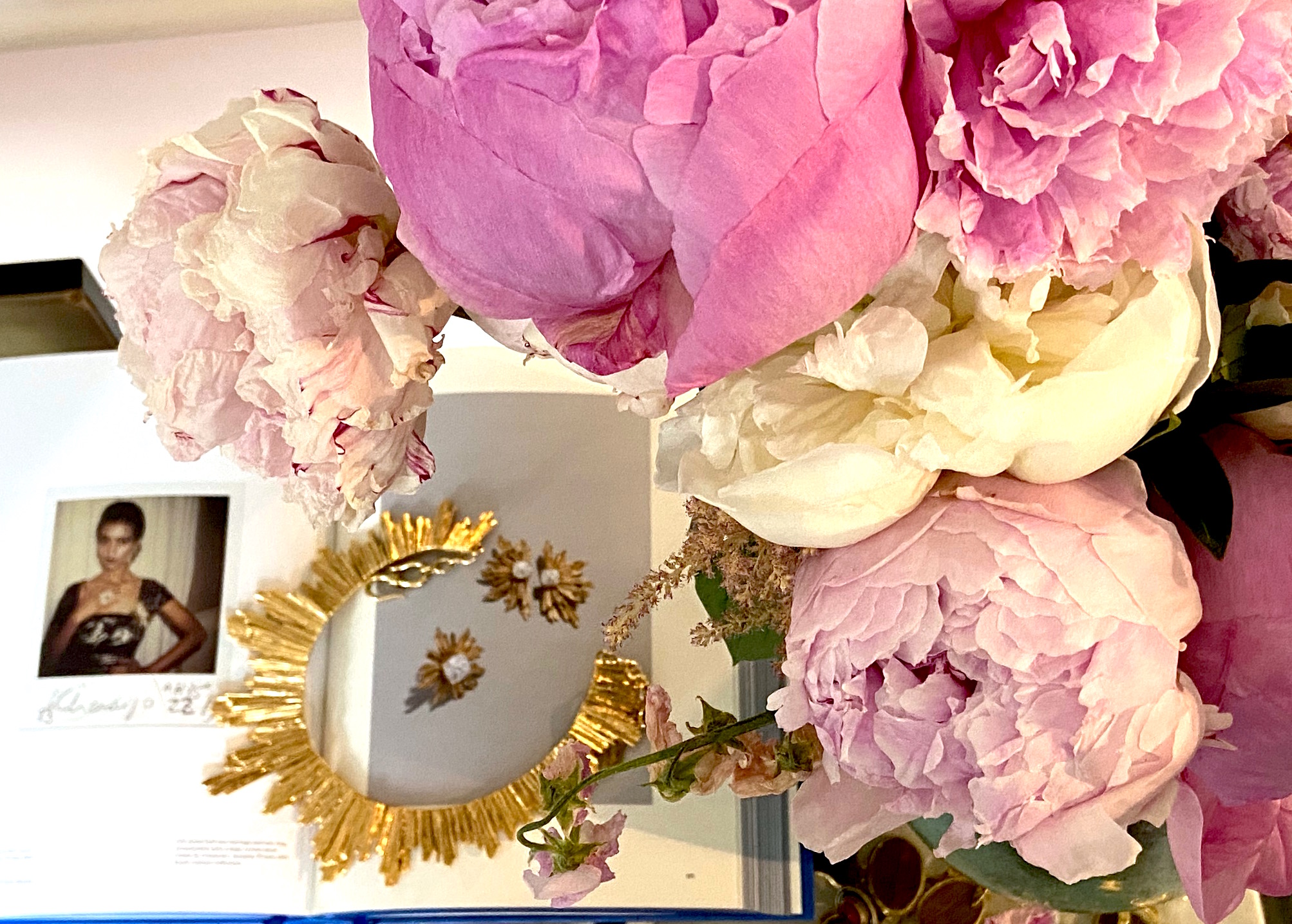 Yves Saint Laurent liebte den Modeschmuck, groß ohne protzig zu sein. Die Anhänger, Armspangen, Ohrclips und Ketten sind keine kurzweilige modische Geste, ganz im Gegenteil, sie besitzen allesamt Stil und sind ein Statement an die Schönheit. Die Blütenblätter in meinem Strauß erinnern an die außergewöhnlichen Entwürfe des großen Couturiers.