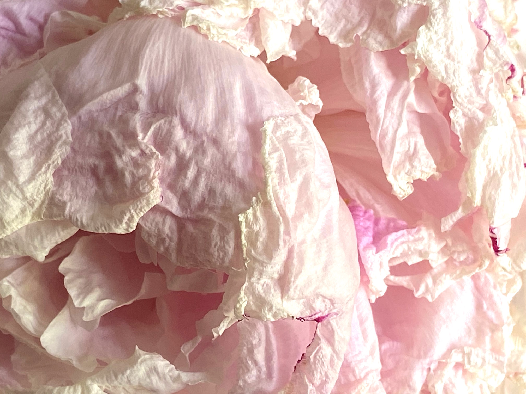 Wann sind Blumen am schönsten, darüber streiten sich die Gemüter. Mein Strauß mit Pfingstrosen wäre bei vielen schon auf dem Kompost gelandet, ich liebe ihn gerade jetzt, bevor die Blüten herabfallen. Man sieht das ganze Spektrum der Farben vom Erblühen bis zum Vergehen, das helle Braun der verwelkten Blätter, das zarte Rose, wie gekräuselter Schaum, dem die Pigmente langsam entweichen, so duftig wie ein Tütü von Roma e Toska aus Kindertagen, und dann wieder das kraftstrotzende Pink.