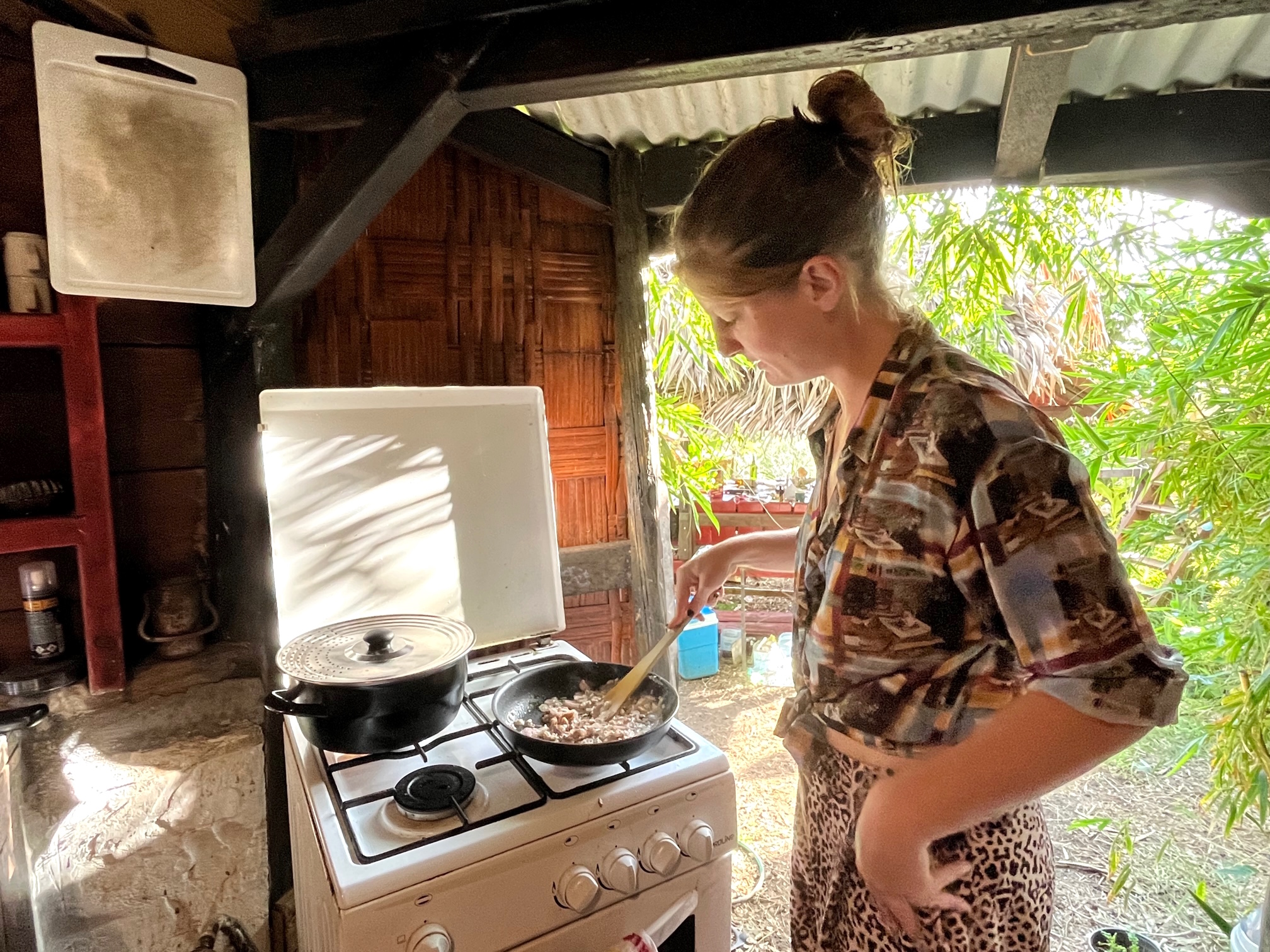 Es ist später Nachmittag, tropisch warm, zwischendurch regnet es immer wieder ein wenig. Roma trägt lange Hosen gegen Moskitos und die Seidenbluse, die besonders angenehm bei diesen Temperaturen ist, besser als T-Shirts oder Baumwollhemden. Die Haare zum Knoten hochgebunden, konzentriert, kein Wort zu viel. Aus dem I-Phone tönt Queen mit Freddy Mercury.