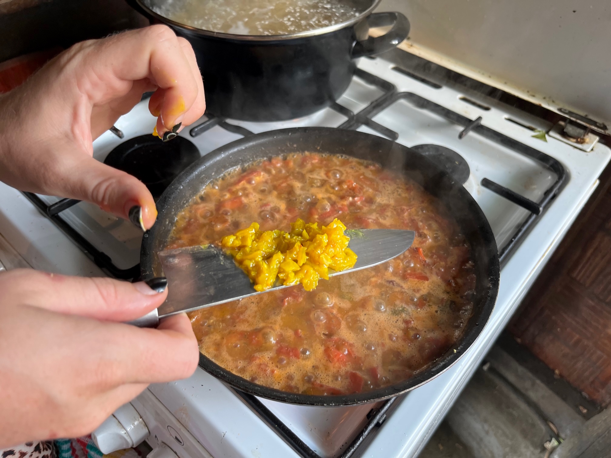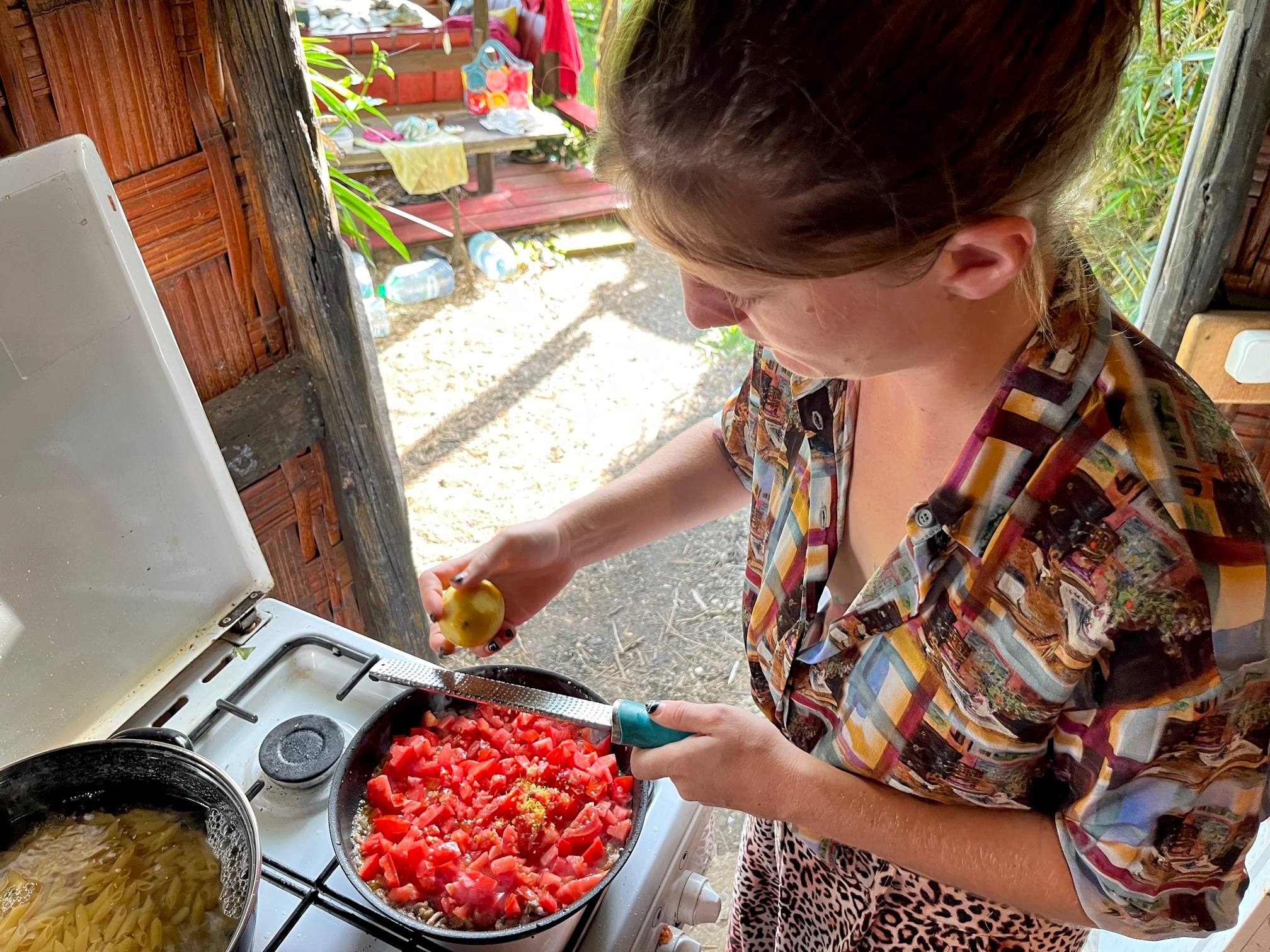 Kochen ist timing, Adrenalin, keine Zeit, um lange die richtige Einstellung für das Foto zu suchen. Ich störe, stehe im Weg und quatsche zu viel. Besser auf Bilder von uns beiden verzichten, nervt hier am Ort des Geschehens unglaublich, wie ich belehrt werde.