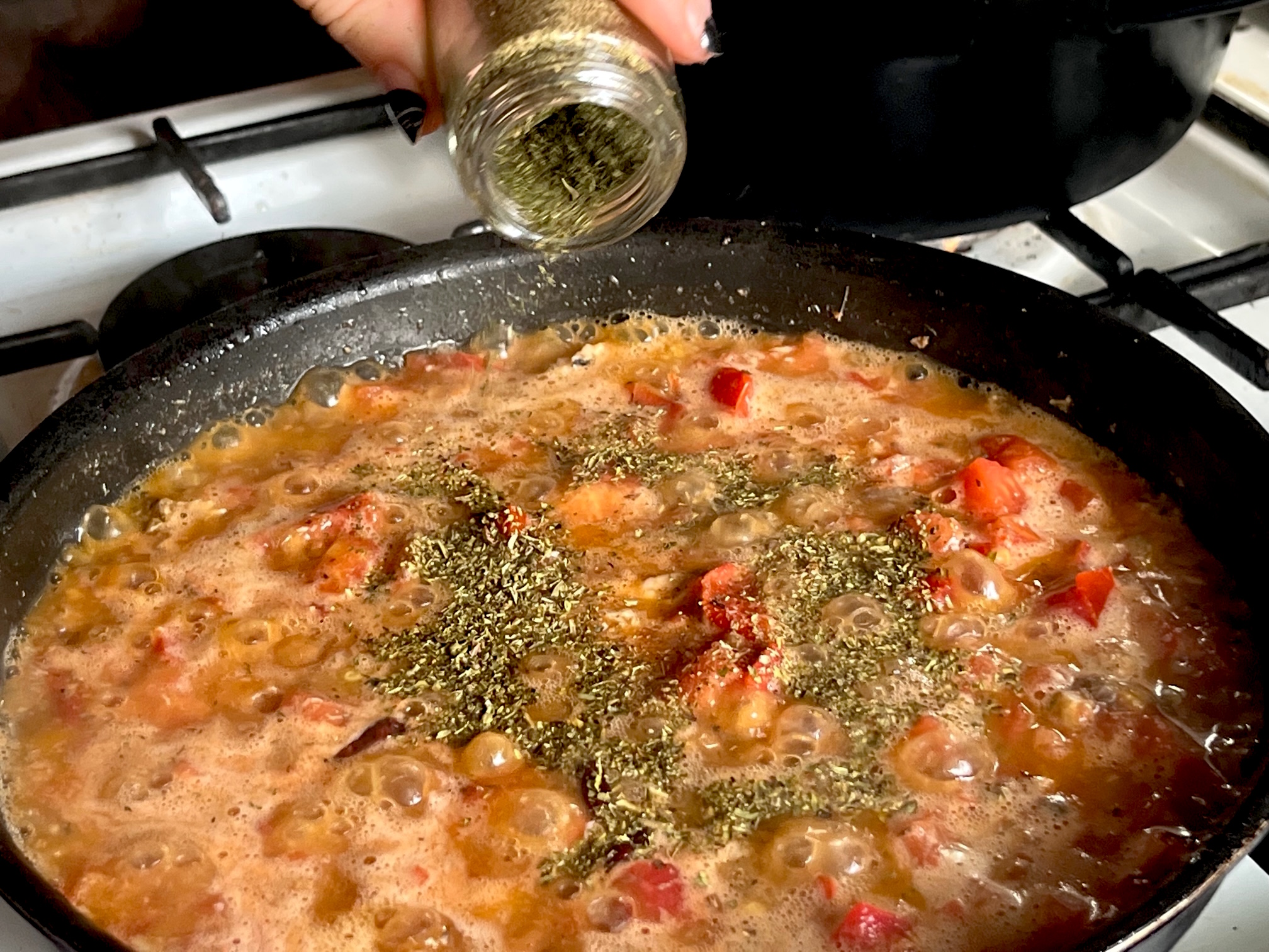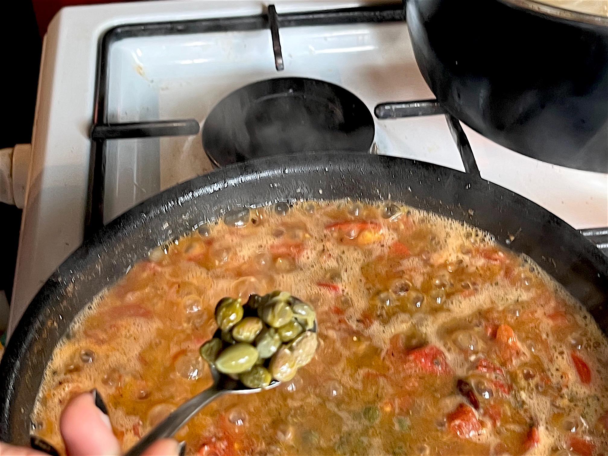 Alles bei niedriger Temperatur einkochen. Wer möchte, gießt noch ein Glas Wein dazu. Roma liebt es, ihre Küche zu einer Experimentierwerkstatt werden zu lassen, alles eine Frage der Chemie. Sie ist die “bezaubernde Jeannie”, die für ihren Meister immer neue Varianten erfindet (meine Lieblingsserie aus den 60er Jahren).