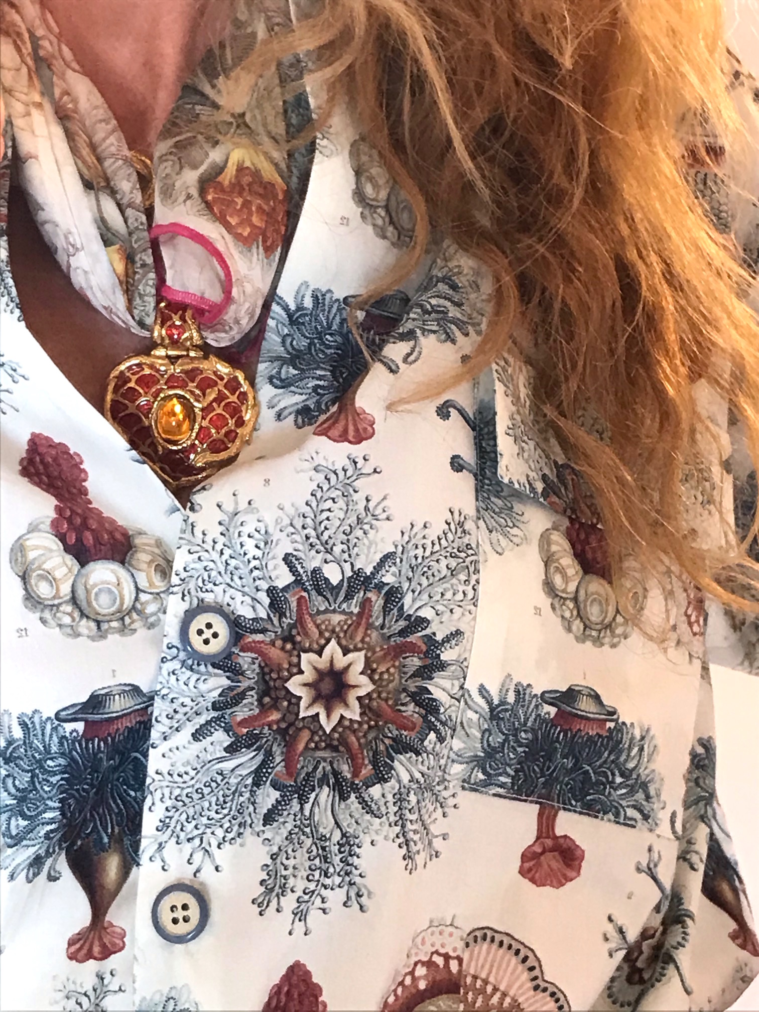 Holland-Bluse und Kimono-Bluse aus Cotton mit den Staatsquallen des Erich Haeckel sind noch nicht im Online Shop, aber schon hier auf Sylt und per Versand zu kaufen.