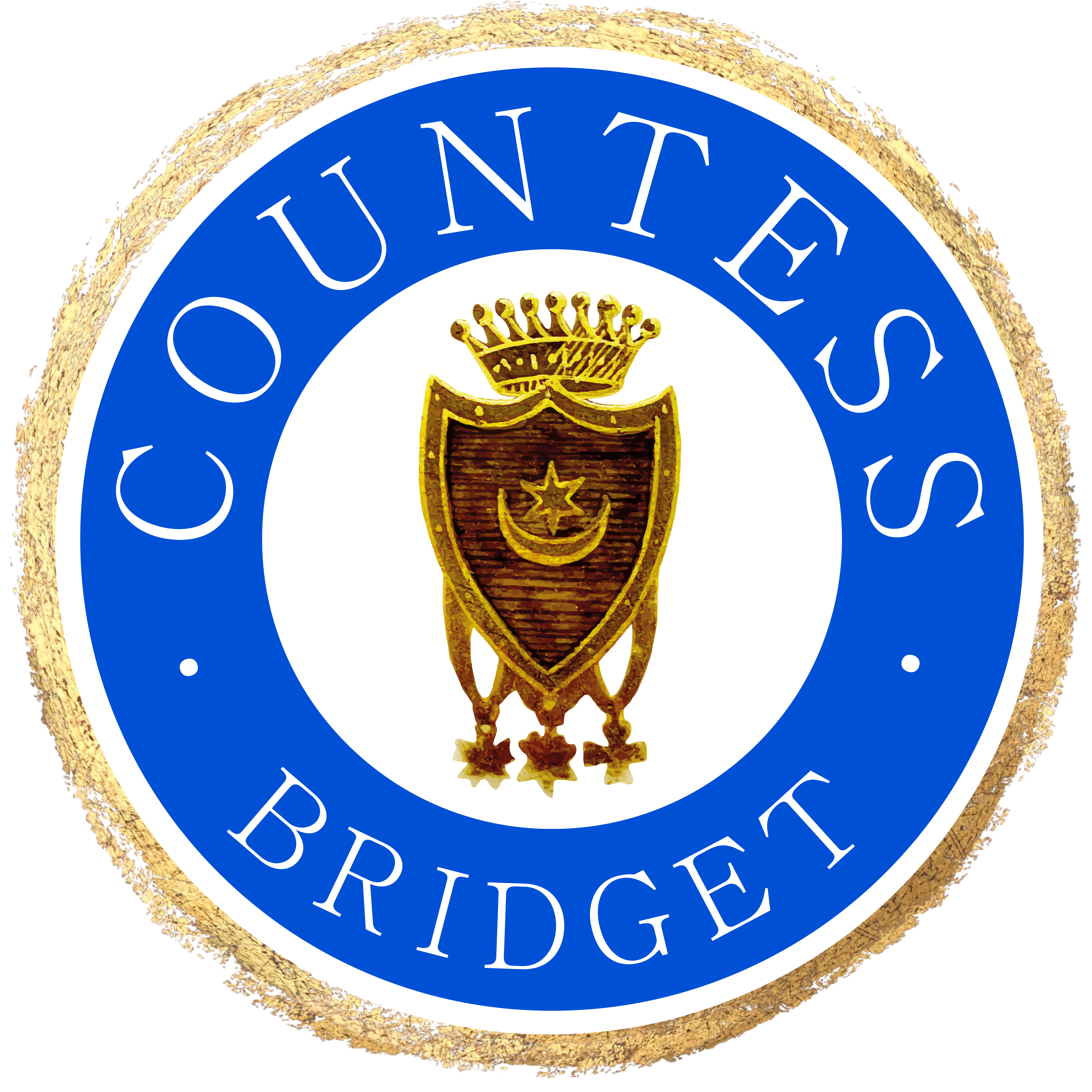 Das Logo, entworfen von einer jungen Grafikerin, besitzt das Blattgold des Tellerrandes, das Blau der Tyszkiewicz, ihr Wappen und die echte Gräfin, die ich bin und nicht bin. Schließlich gehört eine ganze Portion Bridget dazu.