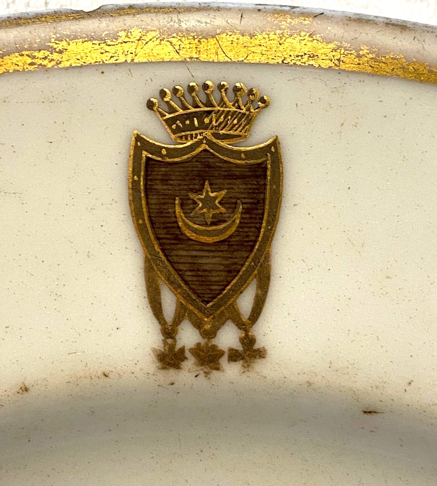 Es wird Zeit für eine Veränderung, wie überhaupt die vergangenen Monate und Wochen voll von Veränderungen waren, verbunden mit vielen Fragen und Überlegungen. Das neue Motiv dazu ist symbolisch: der Teller, sein Wappen, der Rand und der Blick darüber. Beim Umzug vor ein paar Wochen fiel mir das Porzellan aus der Napoleonischen Zeit (um 1800) in die Hände und darauf das Wappen der Grafen Tyszkiewicz.