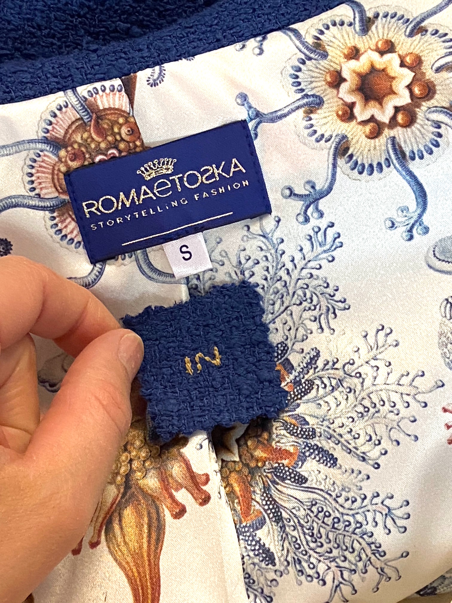 Abb: Blazer mit Roma e Toska Logo und Initialen der Käuferin.