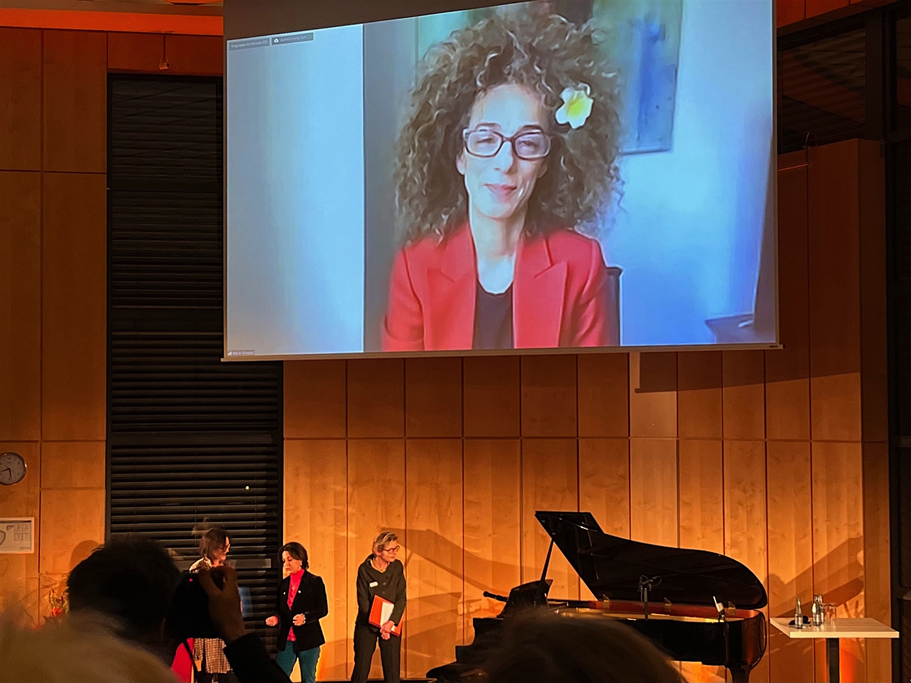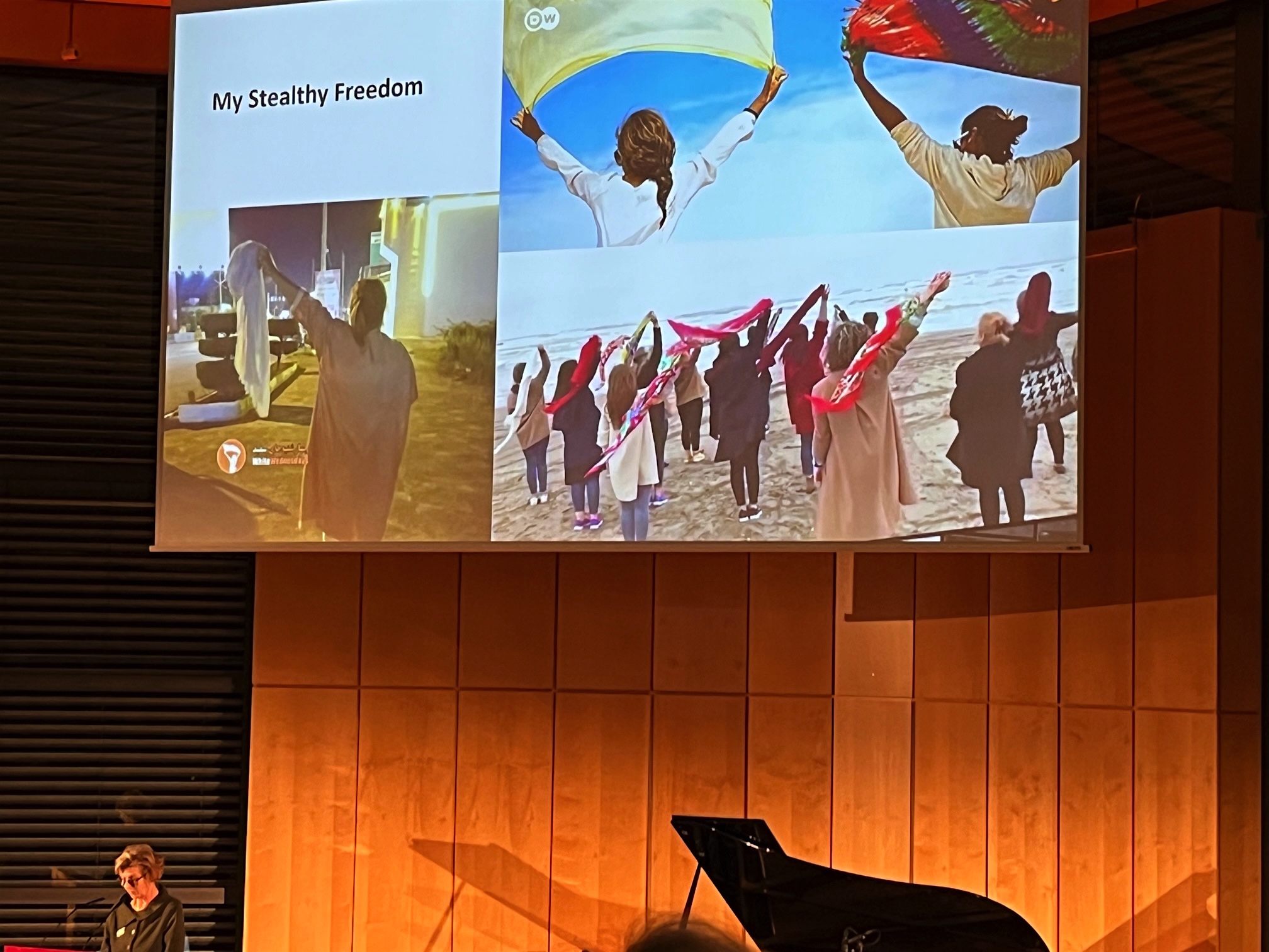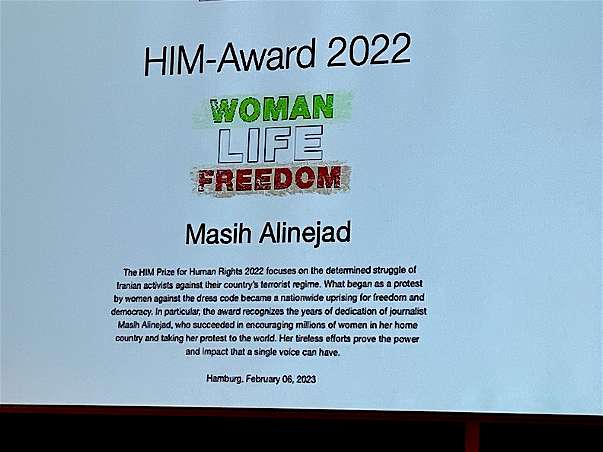 Sie ist viel schöner, als auf dem Foto, das ich im Titel zeige: Masih Alinejad, die iranische Journalistin, die gestern von der Hamburger Initiative für Menschenrechte ausgezeichnet wurde. Aus den USA ist sie zugeschaltet, eine Reise wäre zu gefährlich. Sie muss sich versteckt halten, von dem FBI geschützt, ihr Leben ist in permanter Gefahr. Dennoch zeigt sie eine Kraft, eine unerschütterliche Klarheit, die uns alle im Saal überwältigt und viele zu Tränen rührt.