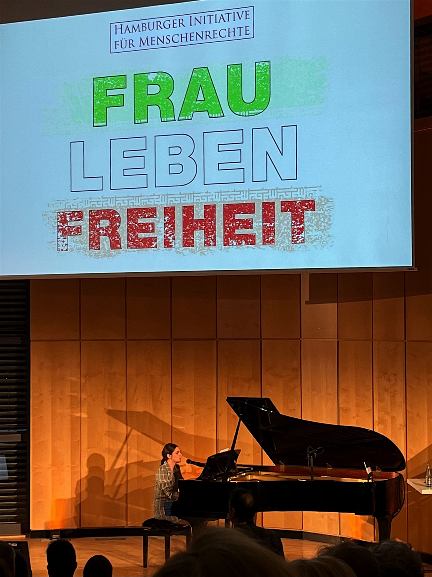 Es wird Zeit für ein WIR, ein TOGETHER, das politischen Druck aufbaut, das für ein Umdenken unserer demokratischen Regierungen sorgt. Die Menschen im Iran brauchen Beistand von außen, das ist die starke Botschaft am Ende des Abends. “Baraye”, “Because …Wegen …” – Deswegen habe ich das Lied so oft eingefügt, damit es uns in den Tag und darüber hinaus begleitet, bis wir seine Melodie mitsummen auf den Straßen, durch die wir gehen dürfen mit unseren Haaren im Wind.