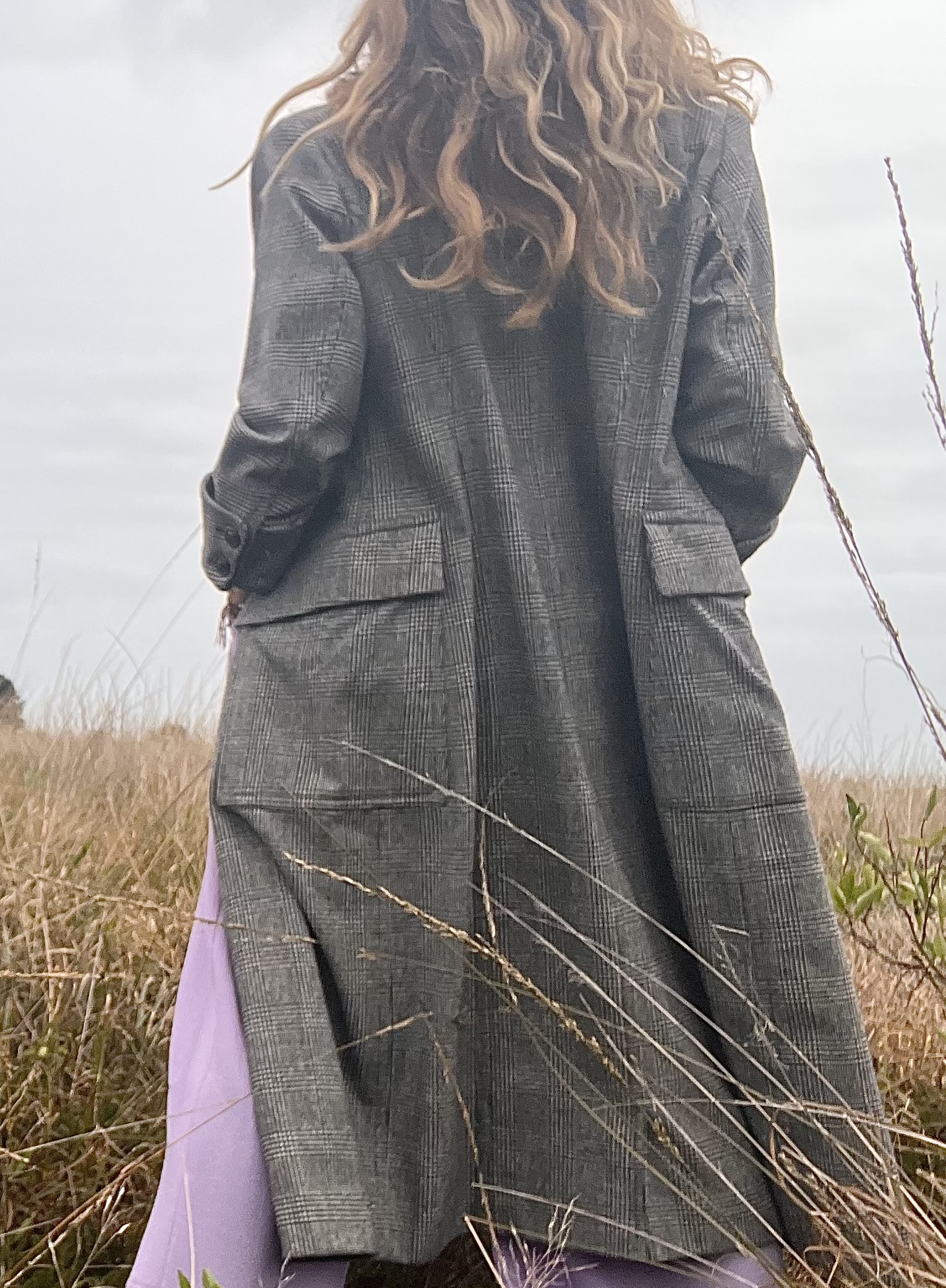 Er besitzt ein Glenscheck-Muster, das hochaktuell ist bzw. nie aus der Mode kommt. Es wurde im 14. Jahrhundert für Edvard II gefertigt, als der noch Prince of Wales war. Die Herkunft dieses grau-weiß-schwarz Karos liegt aber in den Schottischen Highlands: “glen” = Bergtal und “check” = Karo. Soviel zur Stoff-Historie.
