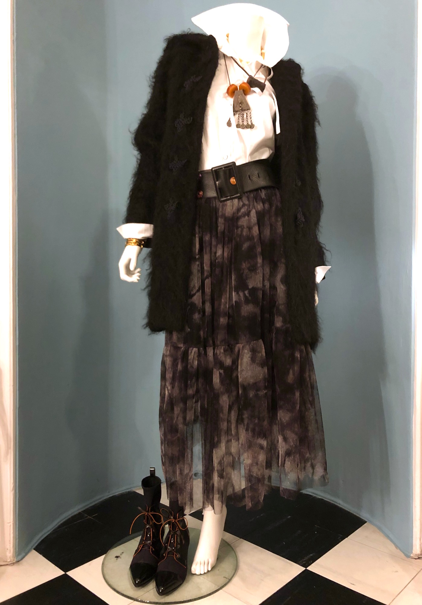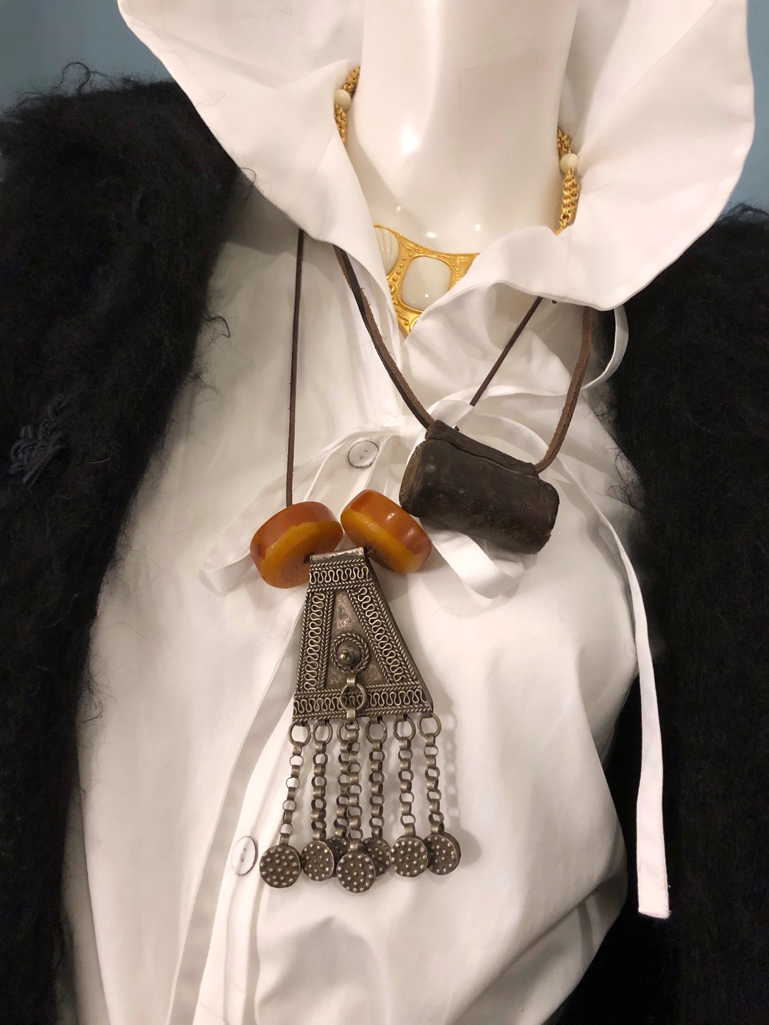Am liebsten würde ich alles für mich selbst kaufen, so schön und inspirierend sind die Teile. In der Tat lief ich gestern in einem uralten Prada Rock, Vintage Yves Saint Laurent Bluse, den braunen Schaftstiefeln von Taglia Scarpe durch die Gegend, natürlich mit dem mir typischen Mix von Ketten um den Hals. (Kein Foto, müsst Ihr Euch vorstellen.)