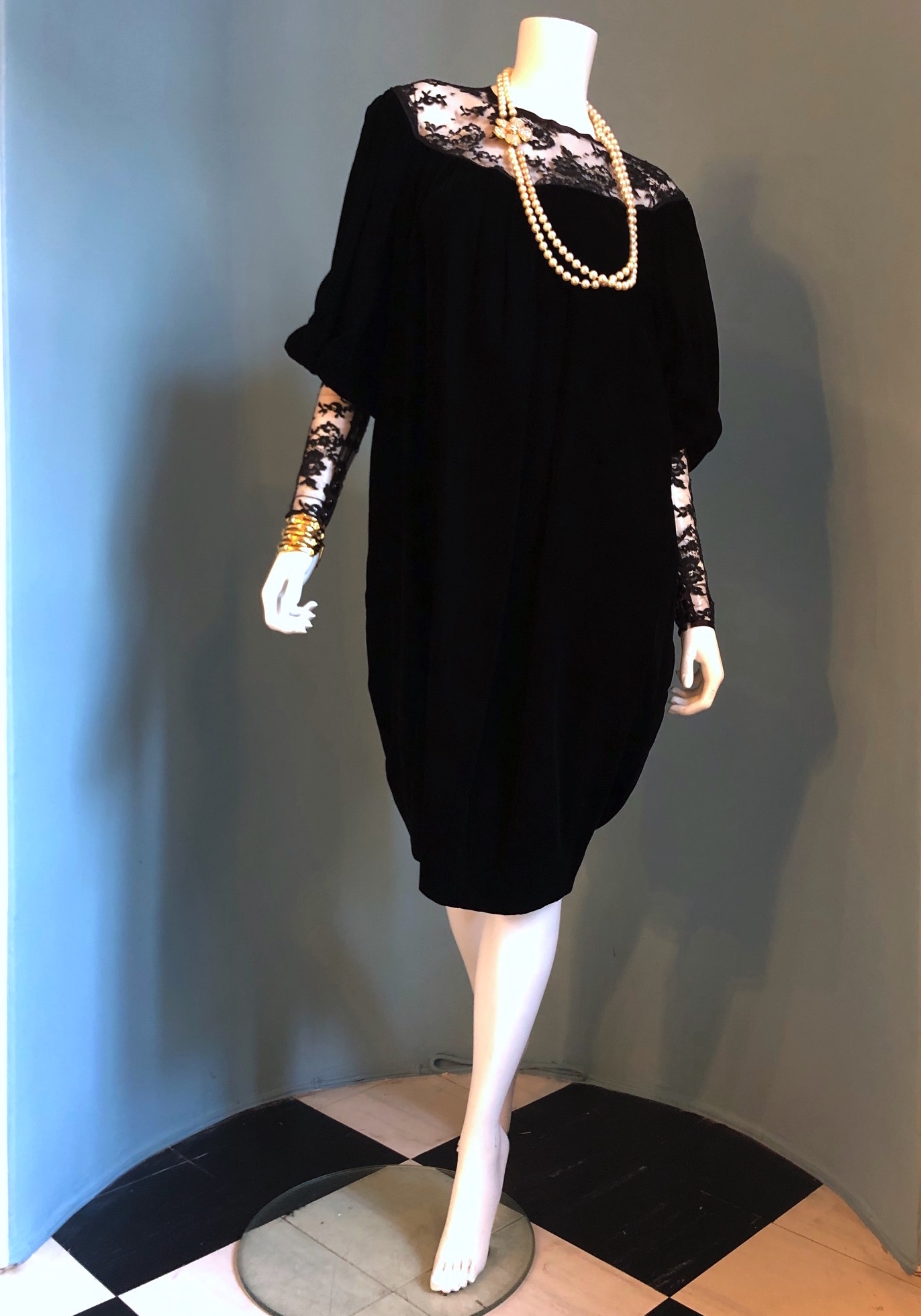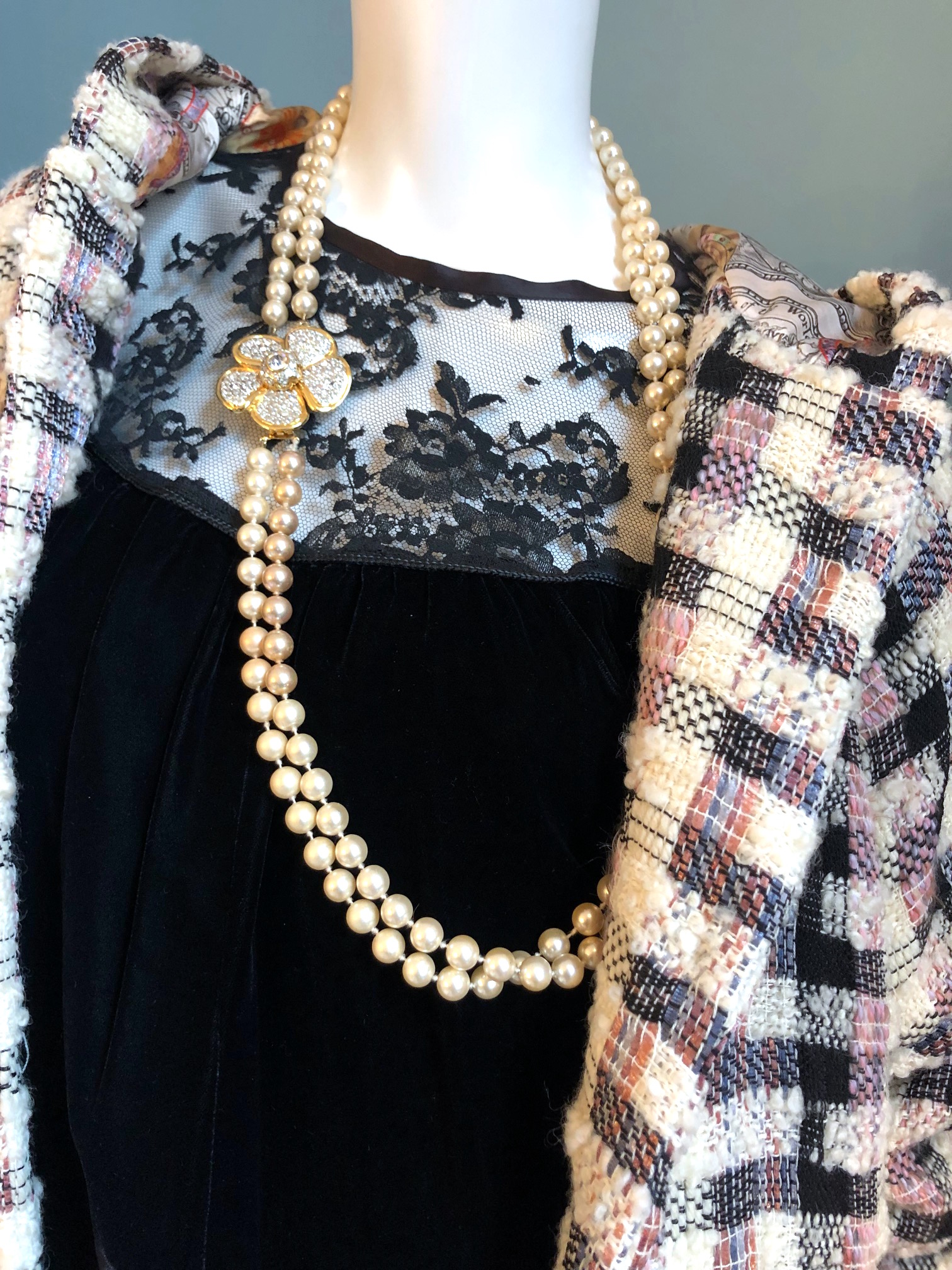 Abb: Samt-Strickerei Kleid Vintage Yves Saint Laurent. Perlenkette Yves Saint Laurent. Mantel Roma e Toska.