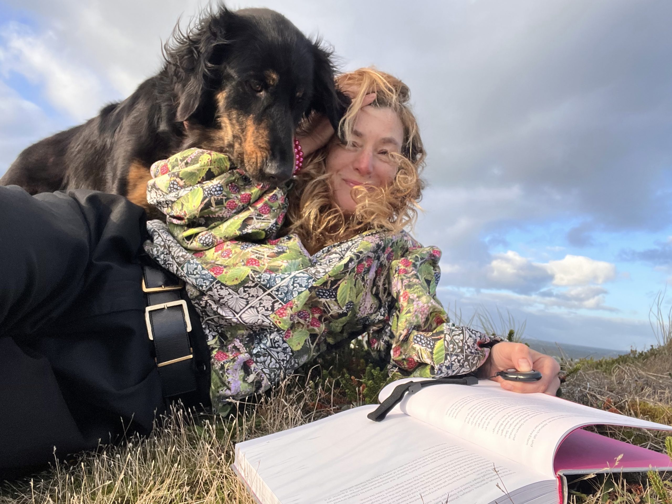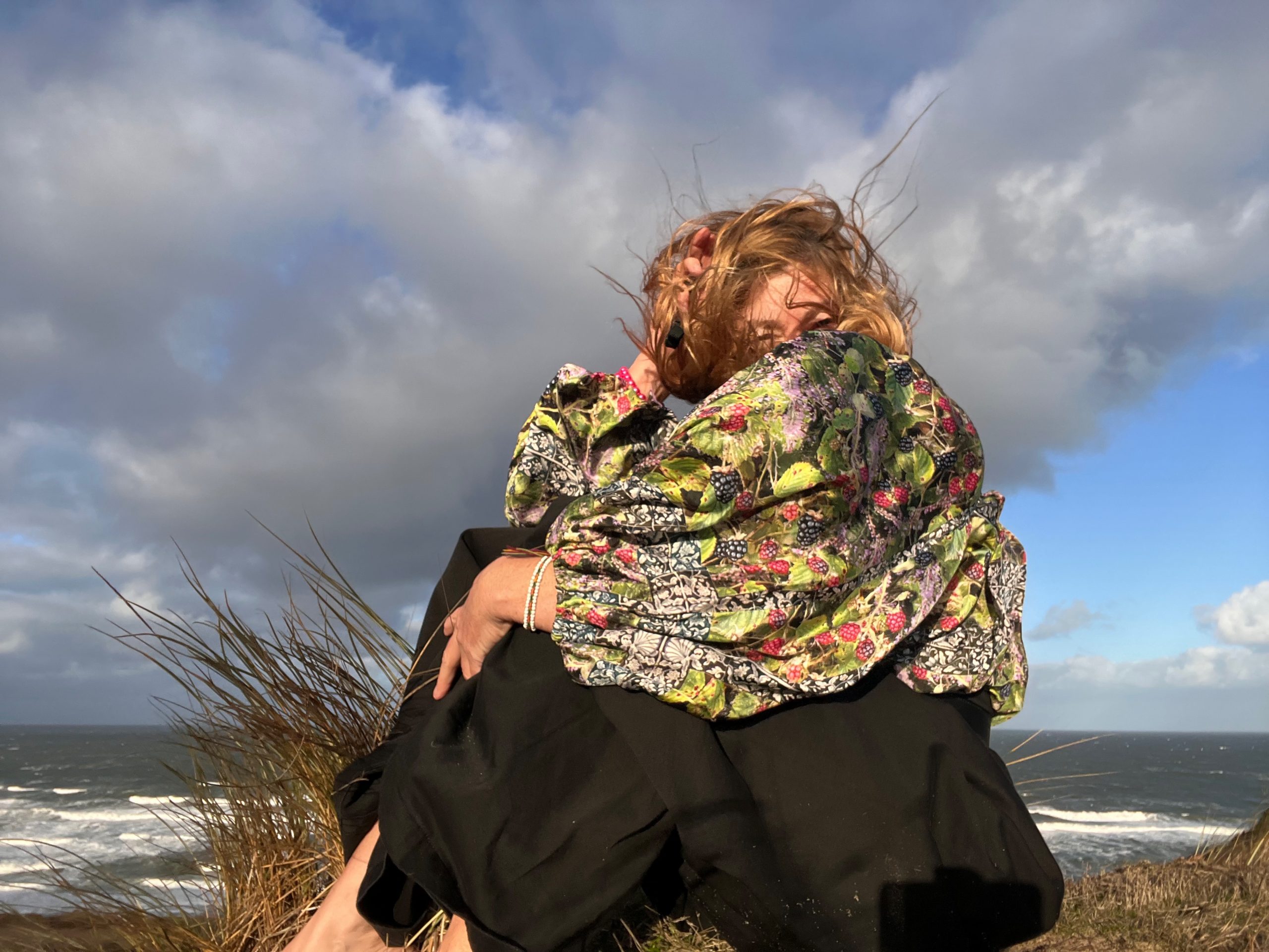 Ein paar vereinzelte Spaziergänger schauen irritiert rüber, was macht die da? Sie ist ganz eins mich sich, den Sylter Brombeeren und den Dünen zwischen Himmel und Meer.