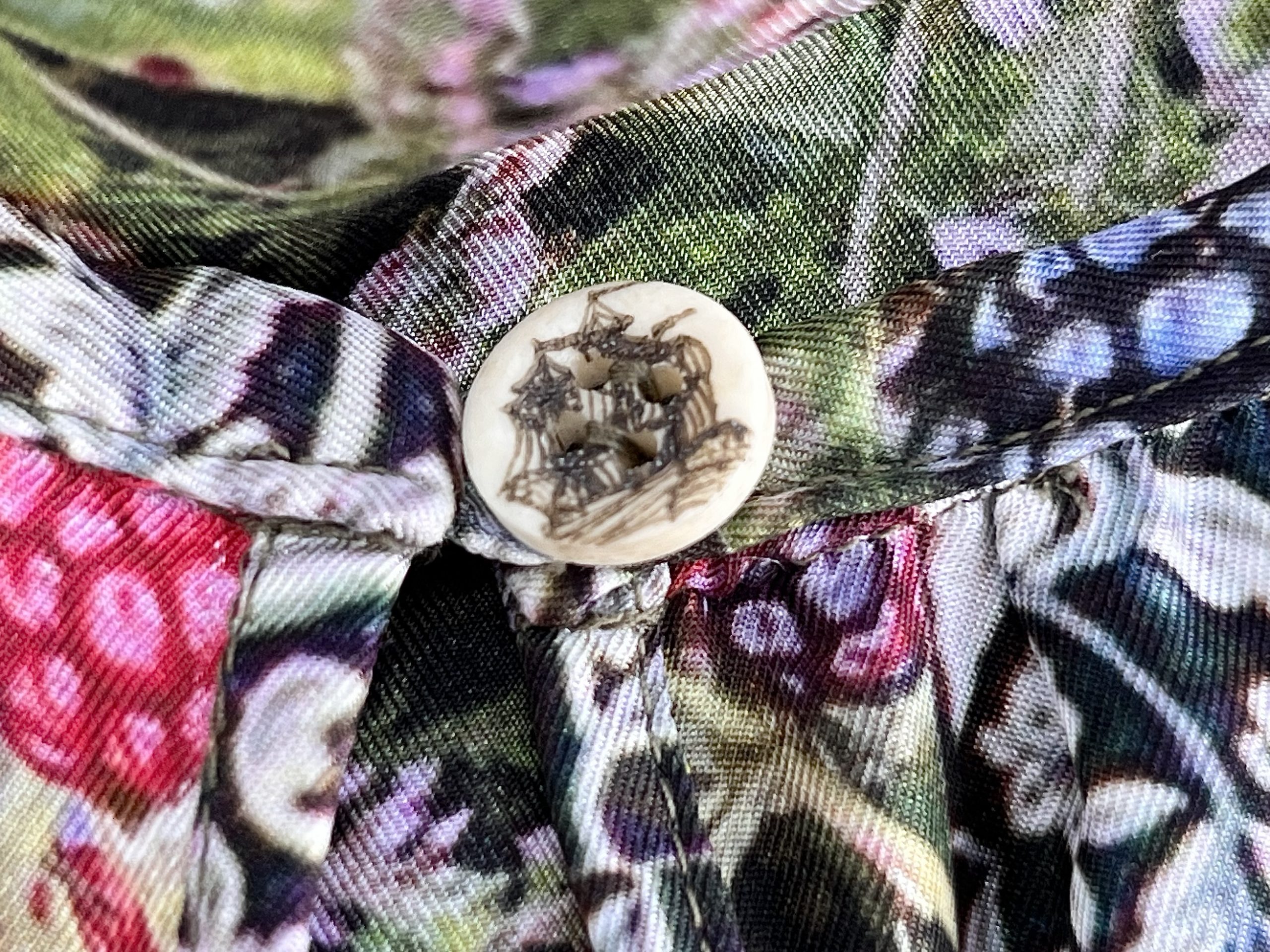 Das Blusen-Modell besitzt keinen Kragen, sondern einen runden Halsausschnitt, der mit einem kleinen Knopf geschlossen wird, auf dem ein Schiff gelasert ist. Brombeeren, Delfter Fliesen und Walfang gehören zur Geschichte der Insel.