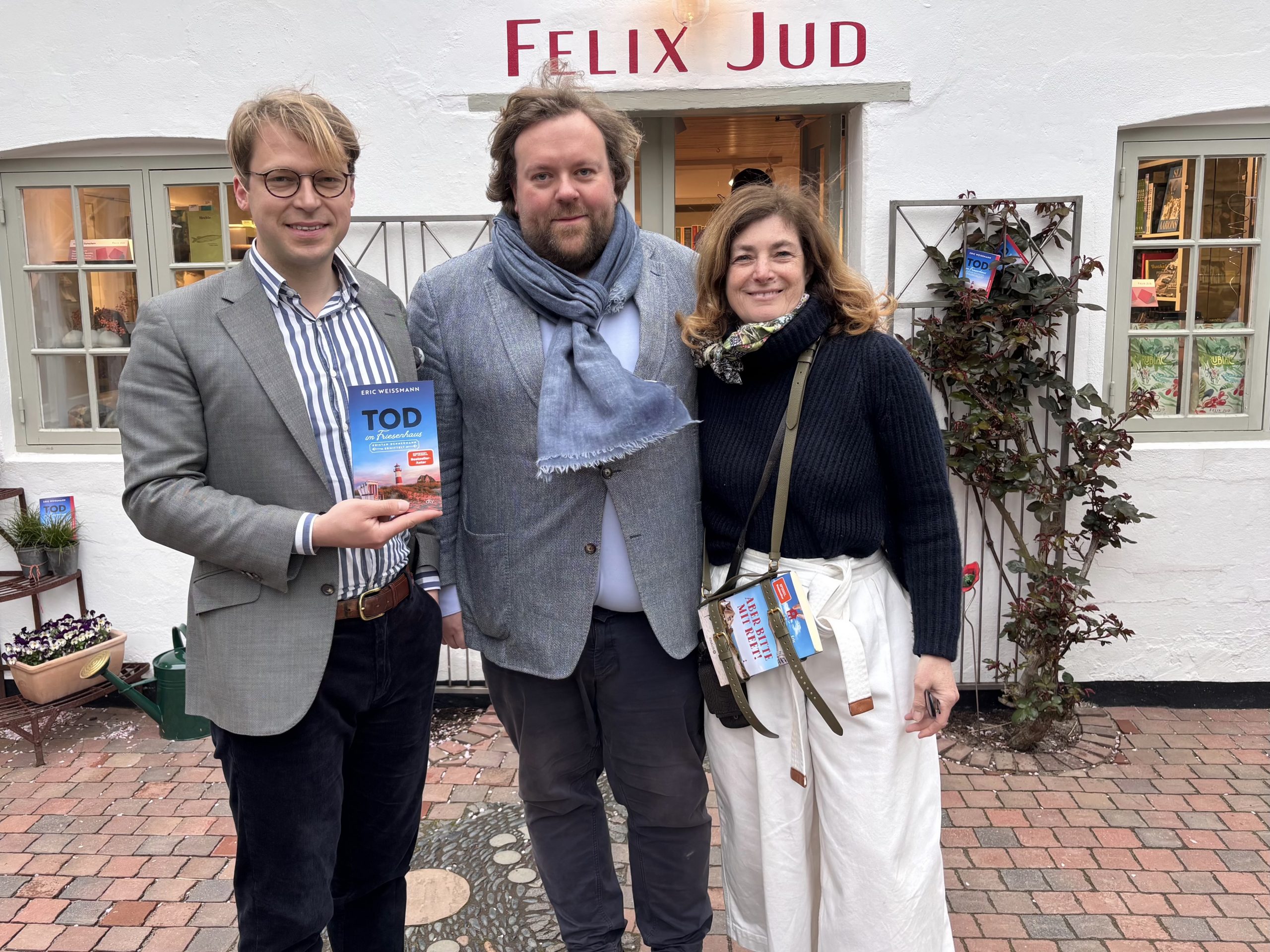 Zusammen mit Robert Eberhardt (Felix Jud) und Eric Weißmann zu seiner Buchvorstellung “Tod im Friesenhaus”