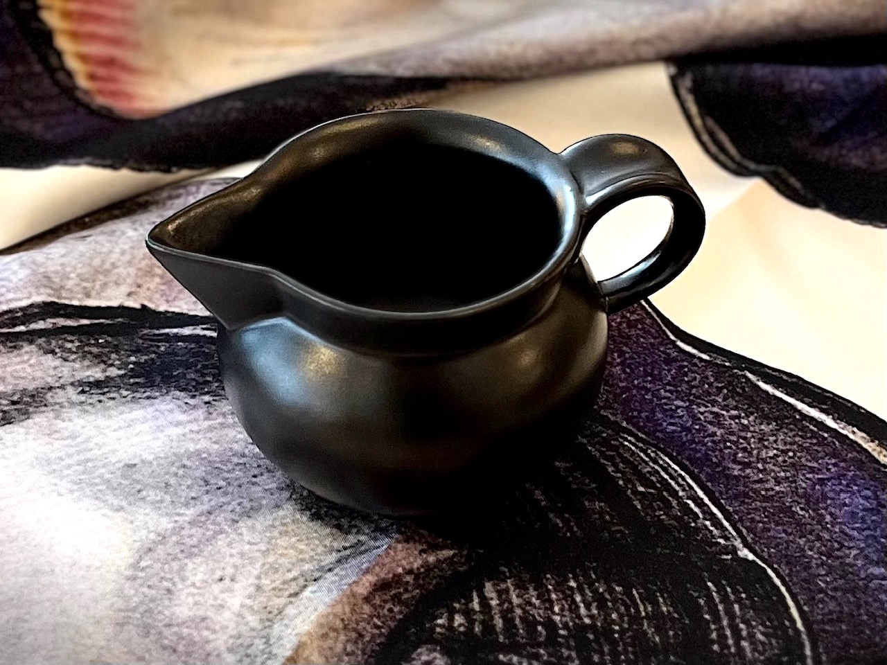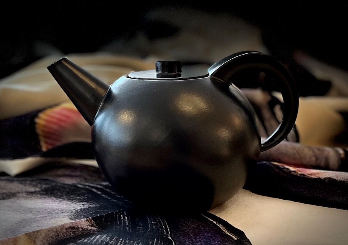 Japan stand Pate mit den klaren Formen, dem matten Schwarz und Gold der Glasur. Harmonisch ausbalanciert liegen Tasse, Kanne und Kännchen in der Hand. Der Deckel der Dose schließt geräuschlos ohne ein kleinstes Wackeln. Die handgefertigten Teile werden zu Stellvertretern einer leisen Kunst von subtiler Präzision.
