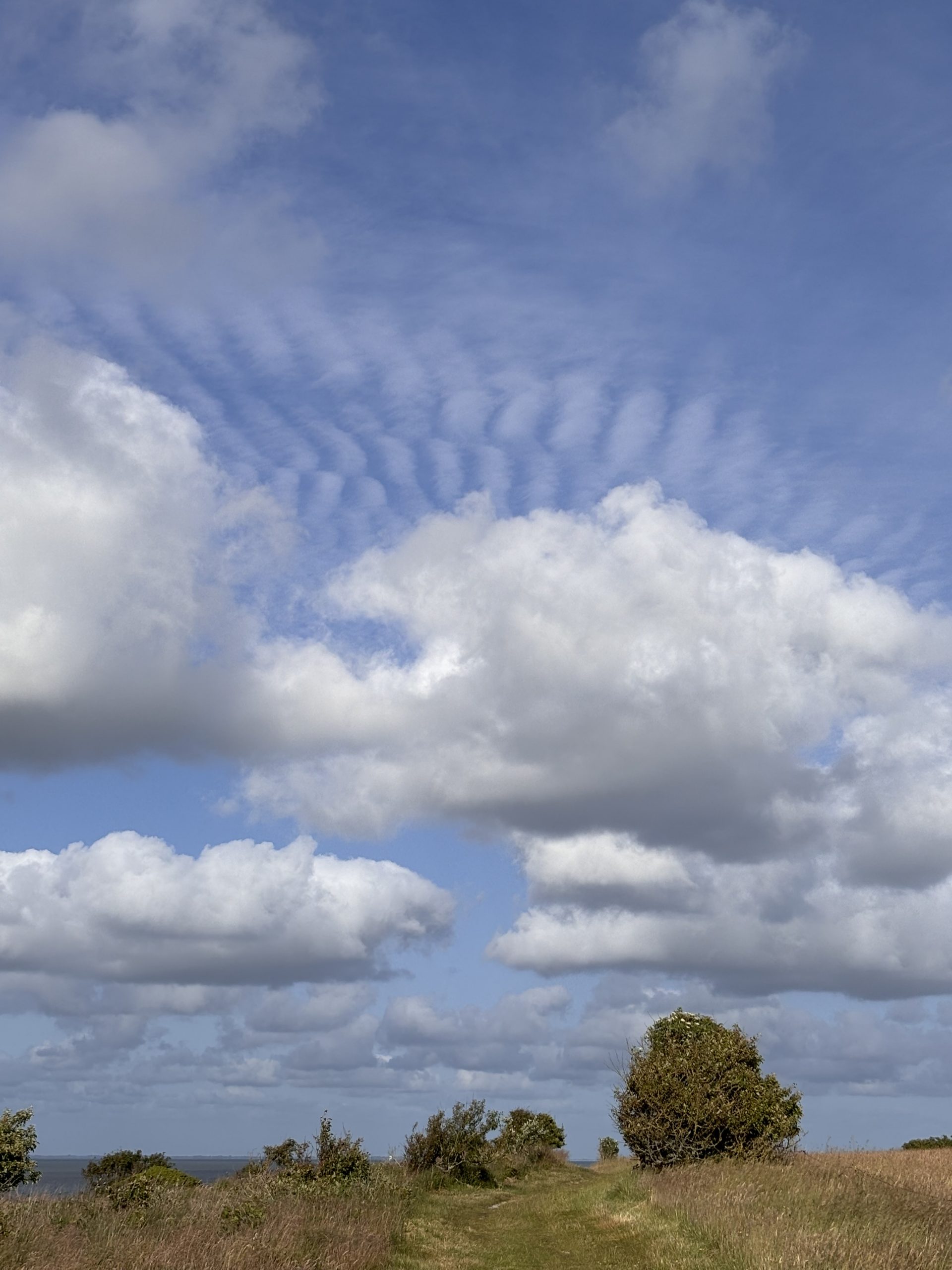 Und so ging ich vorgestern allein meines Weges durch die Sommerfelder und beobachtete, wie sich die Wolken formierten zu einem strahlenden Fächer, als würden sie ein Willkommen vorbereiten. Rücklings lag ich im Gras, dem Himmel so nah.