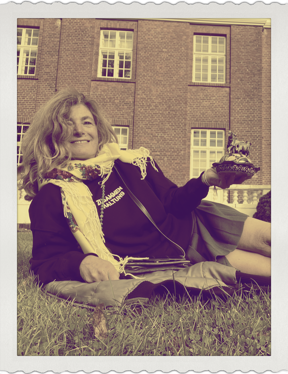 Neumünster, dort von Gleis 4 zu Gleis 2 oder umgekehrt. Einmal die Unterführung (mir wird geholfen) durch, Tumult, Polizeieinsatz und kleine Raufferei auf Bahnsteig No.2. Die Bahn wird umgeleitet, fährt auf der anderen Seite ab. Ankunft Bad Segeberg (17.000 Einwohner), pünktlich. Aber es gibt keinen Bahnhof mehr, sondern nur ein windiges Eck mit einem assigen Discounter für Schuhe (geschlossen). Freundin Linda (Ardmore) rauscht mit ihrem Silberpfeil Mercedes vorbei, anstatt mich einzusammeln. Mit nackten Beinen im Faltenrock positioniere ich mich unter der Leuchtreklame “Kaufland”. Wir finden uns eine halbe Stunde später. Der Abend auf dem Gut wird schön, herzlich in der Runde bei Wein, beschmierten Broten und selbstgebackenem Kuchen.