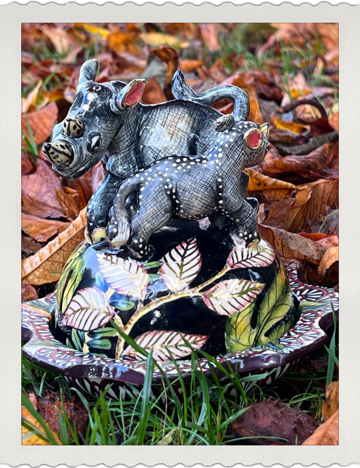Ardmore Keramik Dose mit Nashörnern
