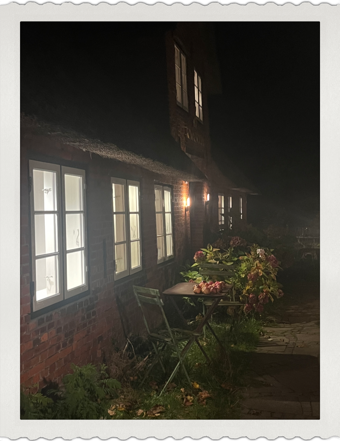 Sparsam nehme ich den Bus, der schon bereitsteht, und rolle anschließend die letzten 300m zu Fuß die Dorfstrasse entlang. Fast kann ich schon das Licht vom alten Kapitänshaus sehen. Doch dann wird es noch mal richtig heftig mit Böen aus Nordwest, die die Breitseite meiner Rimowa-Koffer ungeschützt treffen. Es bringt mich ab vom Kurs. Noch ein letztes mal muss ich alle Kräfte zusammenreißen, um es bis zur Tür zu schaffen. 22:12 Uhr. Home!