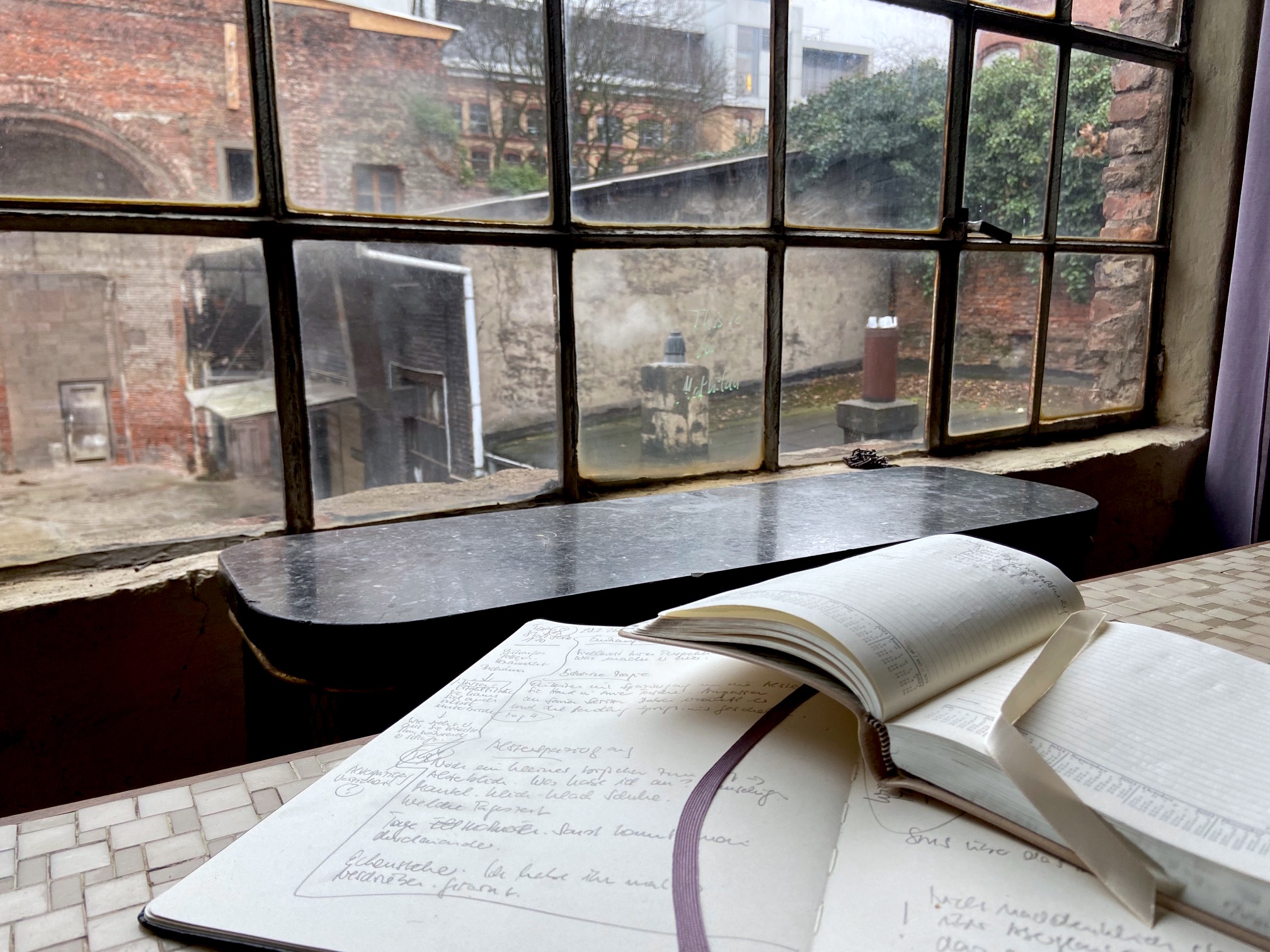 Der Tag ist vollgepackt, wie immer, wenn ich in Hamburg bin. Kein Blogbeitrag gestern und heute bin ich auch schon spät. Früh am Morgen schickte ich ein Foto in die Familien-Freundes-Runde mit der Anmerkung “raue Montagsrealität”. Blick auf die Apsis-Ruine, Autowerkstatt. Keine Farben, tristes Grau, aus dem Schornstein steigt der kalte Rauch des Winters.