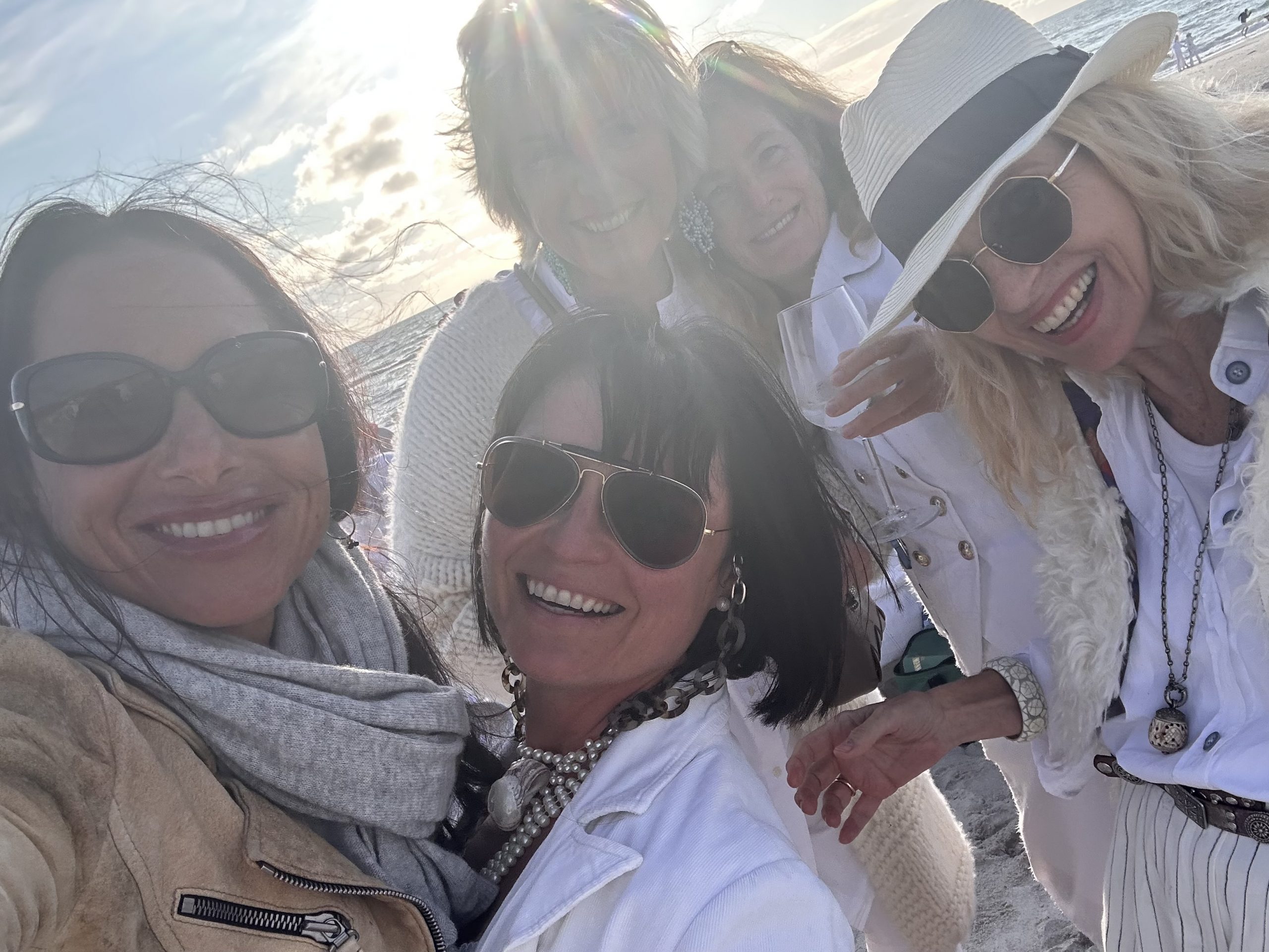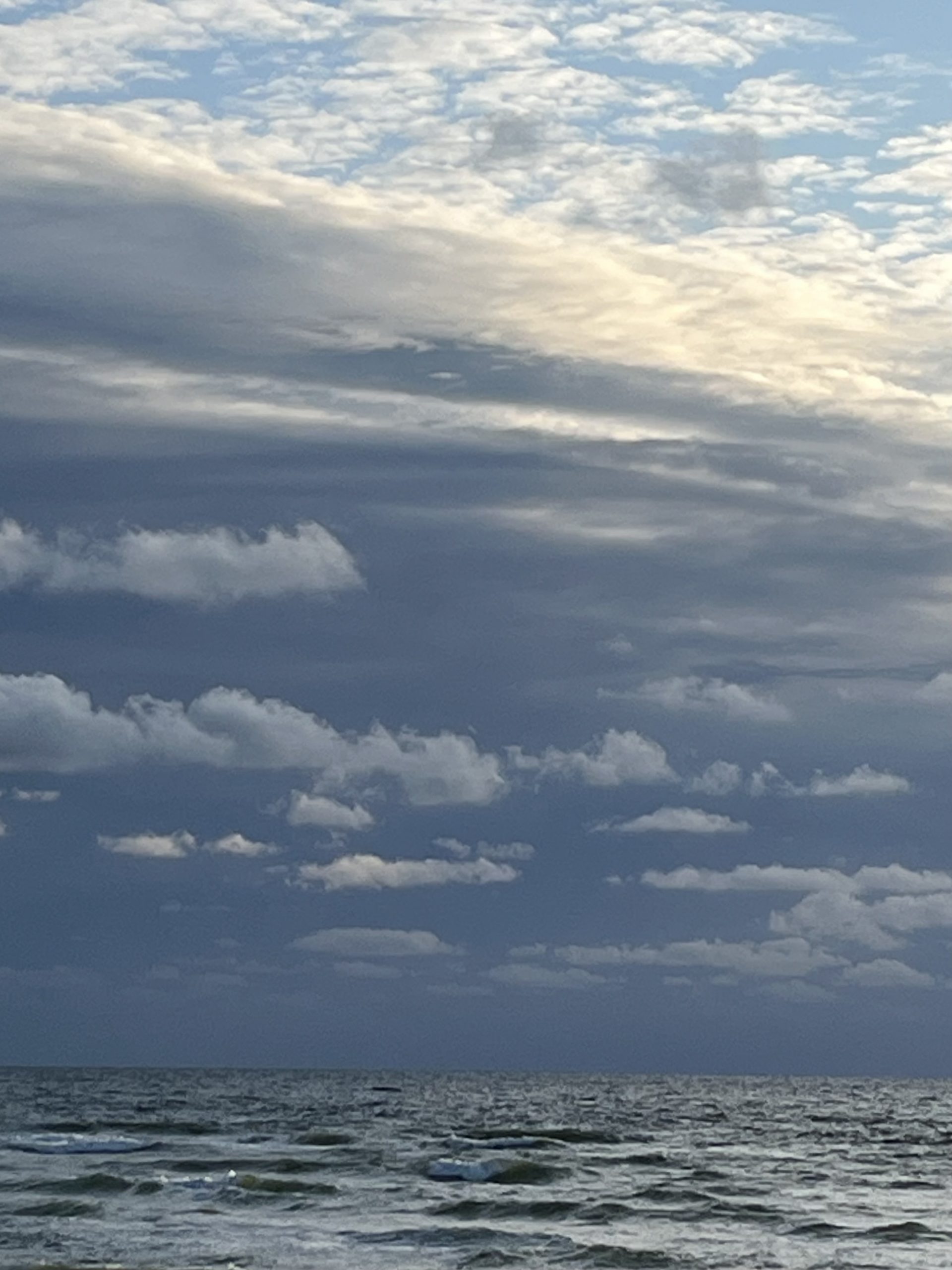 Langsam wird es frisch, wir sind nicht auf Mallorca. Auf den Wellen zeigen sich kleine weiße Schaumkronen und die Wolken wirken am Abendhimmel dem Anlass entsprechend etwas weißer als sonst. Zeit zu gehen. Die Freundin lässt noch einmal das Muscheltuch im Wind flattern, während wir anderen unsere versandeten Habseligkeiten zusammensammeln.