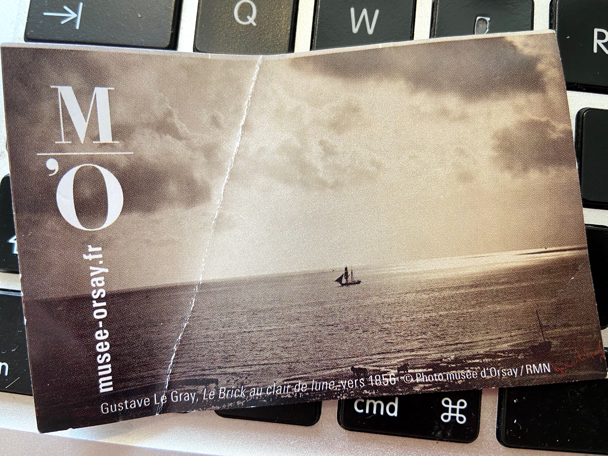 Taschen haben die Besonderheit, dass sich in ihnen Inhalte aufbewahren, die schon lange aus der Erinnerung gefallen sind. So lag heute Morgen urplötzlich das Ticket vom Musée D’Orsay Paris auf dem Schreibtisch, wahrscheinlich aus irgendeinem Seitenfach der alten Celine herausgerutscht. Wer ist oder besser war Gustave Le Gray? Und noch viel wichtiger, wer war am 21.9.2018 in seiner Ausstellung?