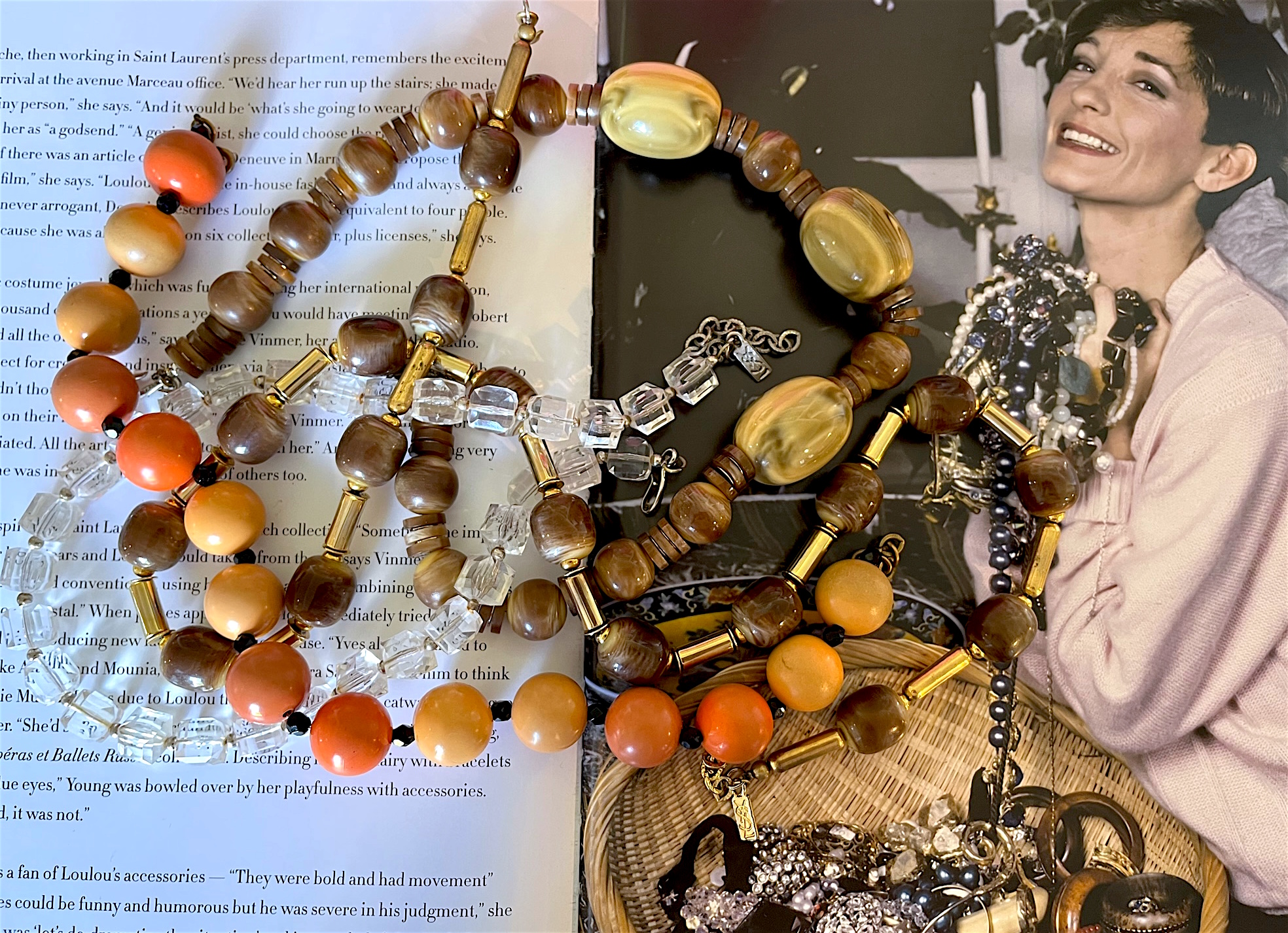 Ein Bild schwebt mir immer als Inspiration vor Augen: Loulou de la Falaise, seine Muse, verantwortlich für die Accessoires, wie sie ihre Hände in die Schale mit Schmuck taucht. Diesen Überschwang leben, that’s me!