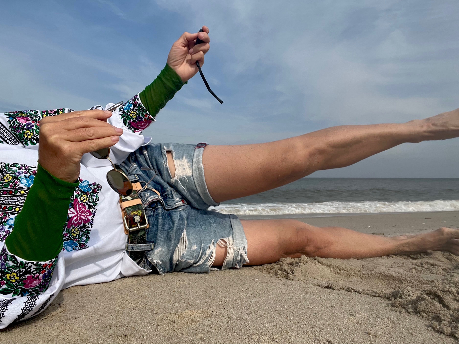 Mittlerweile weiß ich, es gibt Millionen von Leidensgenossinnen, die irgendein Teil von sich nicht mögen. Also ist es an der Zeit, uns Stück für Stück dieser ästhetischen “Sollbruchstelle” zu nähern. Immer in kleinen verträglichen Positionen. Fangen wir oben an. Auf Sylt gibt es zum Glück nur Haare und keine Frisur. Praktisch, wir lassen es einfach ungekämmt flattern.