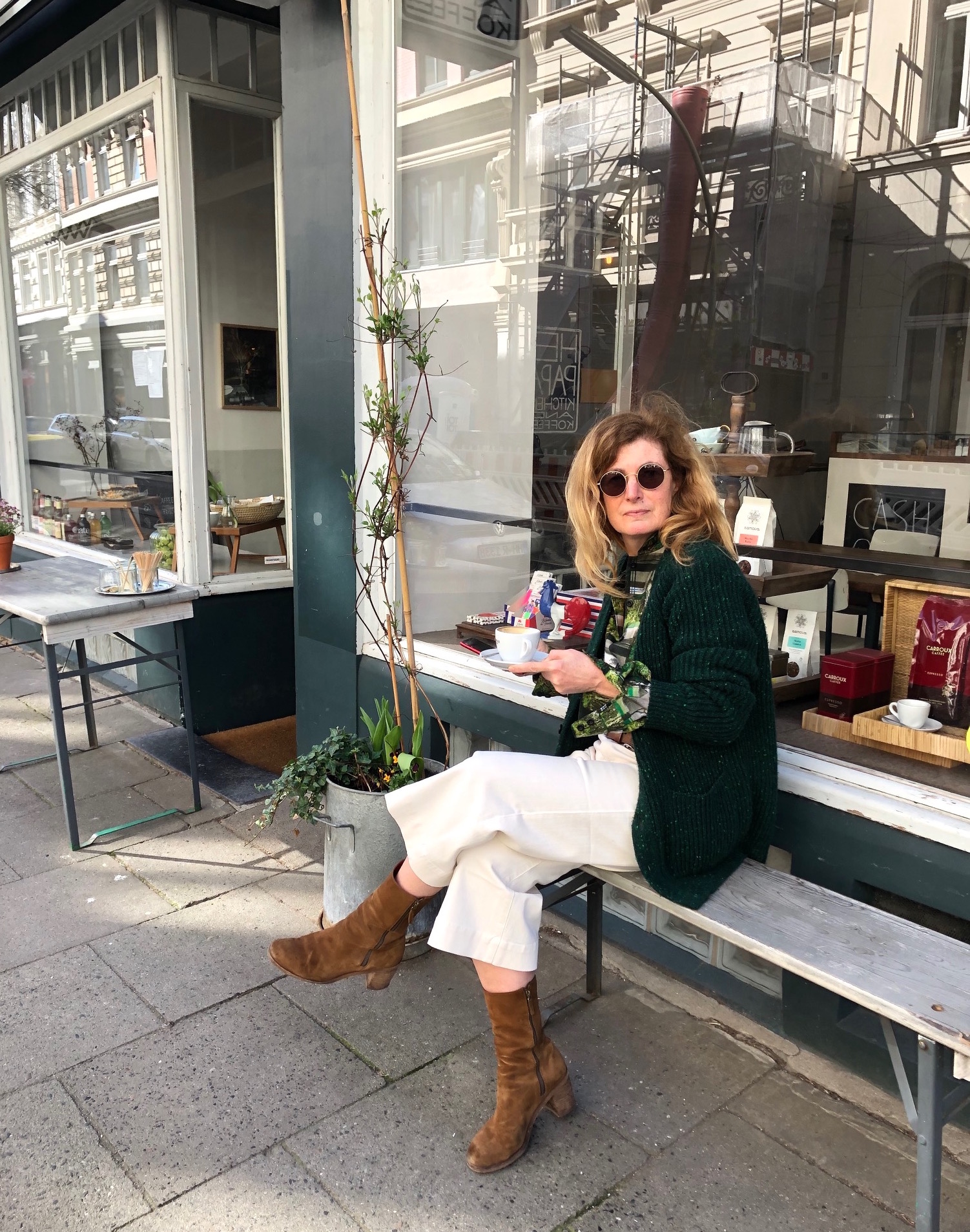 Der Erstversuch scheint gelungen, die Jungs von Maison F haben ein wenig unterstützt. Und schon bleiben Passanten stehen. Es gilt das “Click&Collect”, der Plausch vor der Tür und der entspannte Cappuccino von Hej Papa nebenan.