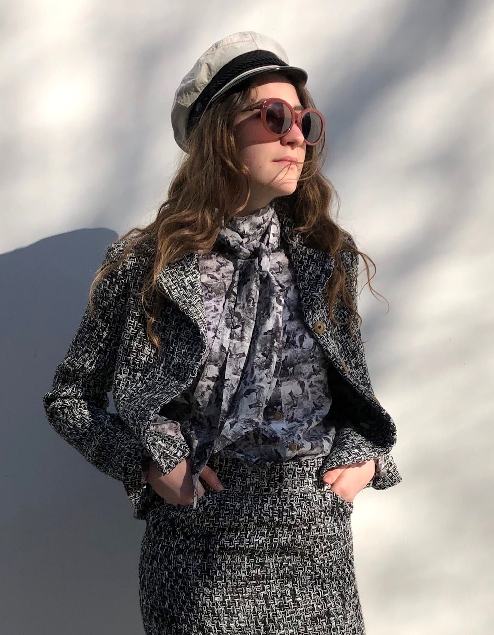 Mein anderer Lieblng ist der schwarz-weiße Boulé Blazer mit dem Fabel Doré Futter. Er passt zu dem Rock, der schon in meinem Schrank hängt, und sieht auch verdammt cool zu meinen Baggy Jeans aus.