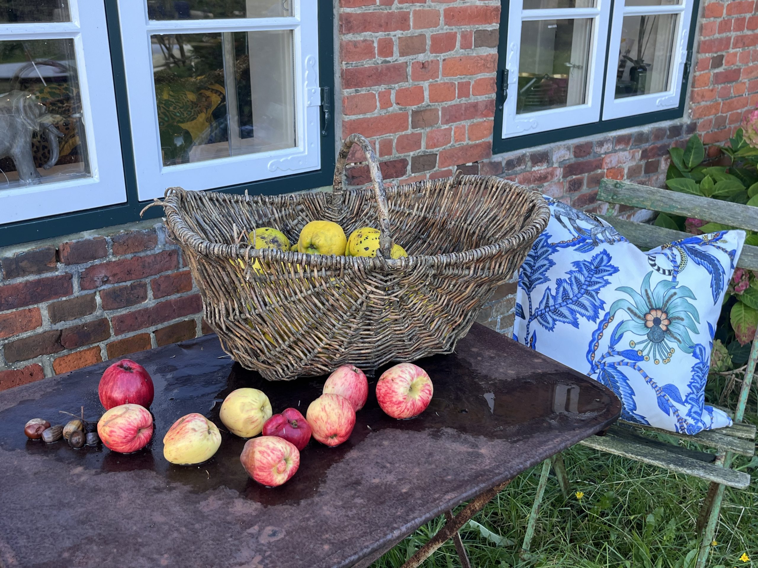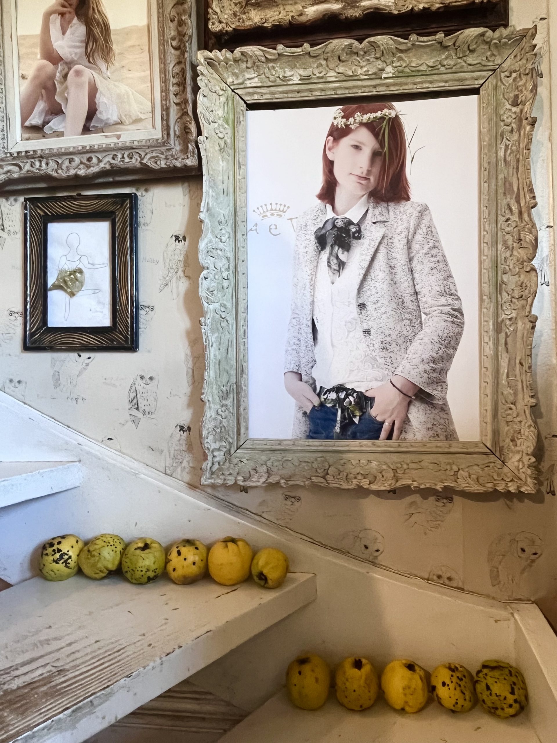 Die Stilleben-Fotos hatte ich schon vor ein paar Tagen gemacht von den gelben Quitten und dem roten Fallobst. Ach, könnte ich doch nur das Leid dort draußen ausklammern. Es funktioniert nicht, und gerade deswegen habe ich ja mit der Childhood Kollektion vor gut eineinhalb Jahren begonnen. Ich wollte eine in mir lebende Kraft wecken, die dem Bösen entgegentreten kann.